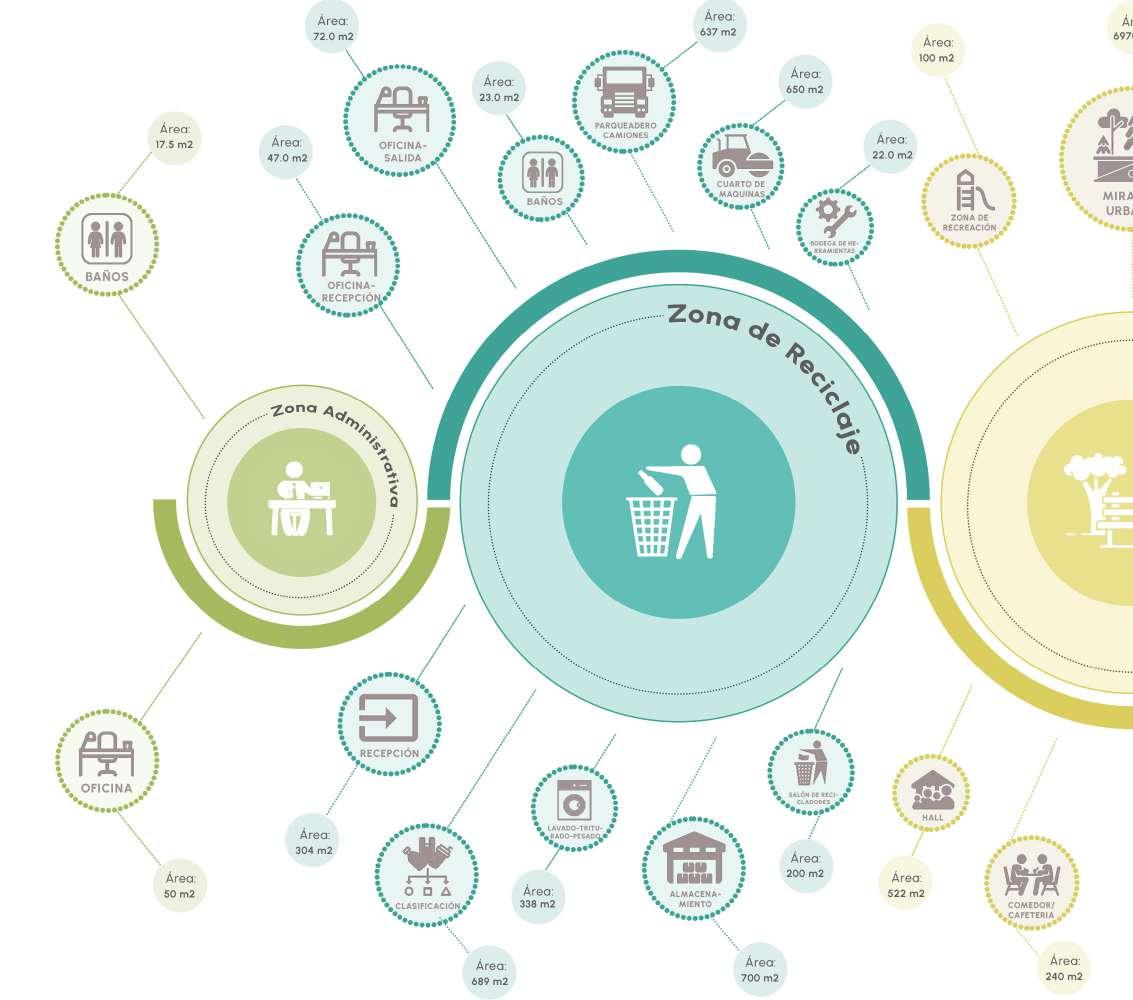 de estrategias renovables, que no solo se encarguen de recolectar los residuos sino también que busquen reactivar la conciencia de cada usuario para la correcta recolección y separación de estos residuos para que a corto plazo se logre una ciudad más humana y en donde el papel del arquitecto se complementa con el carácter ambiental y social de la ciudad. La solución radica desde que nosotros tomemos conciencia y empecemos con voluntad a generar un mejor cambio ambiental, pudiendo enriquecer la evolución de los diferentes programas incentivadores de la gestión integral y sistémica de residuos, que con responsabilidad social y una buena propuesta constructiva, lograrán un impacto favorable y elevarán el nivel de calidad de vida de los habitantes.