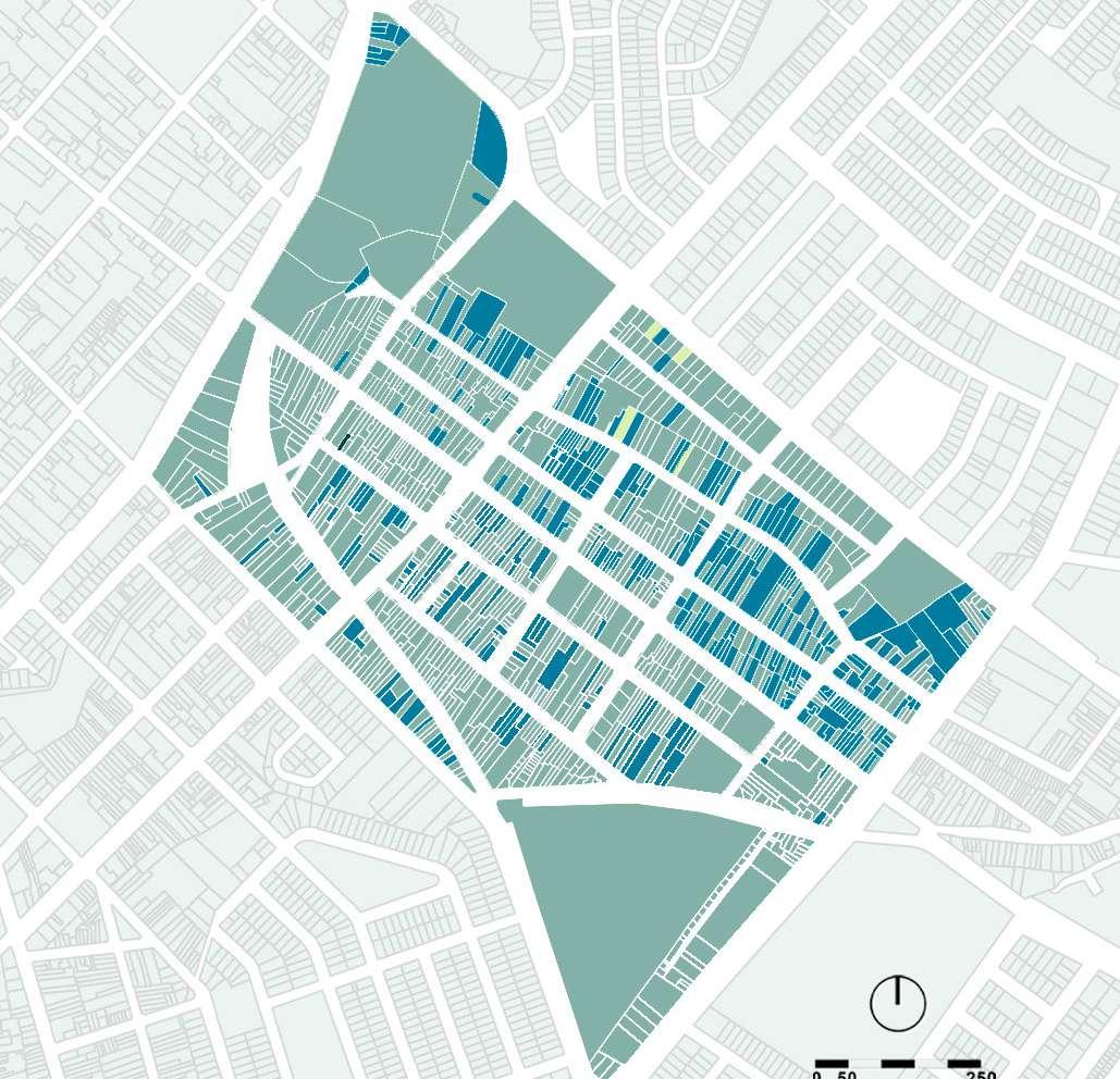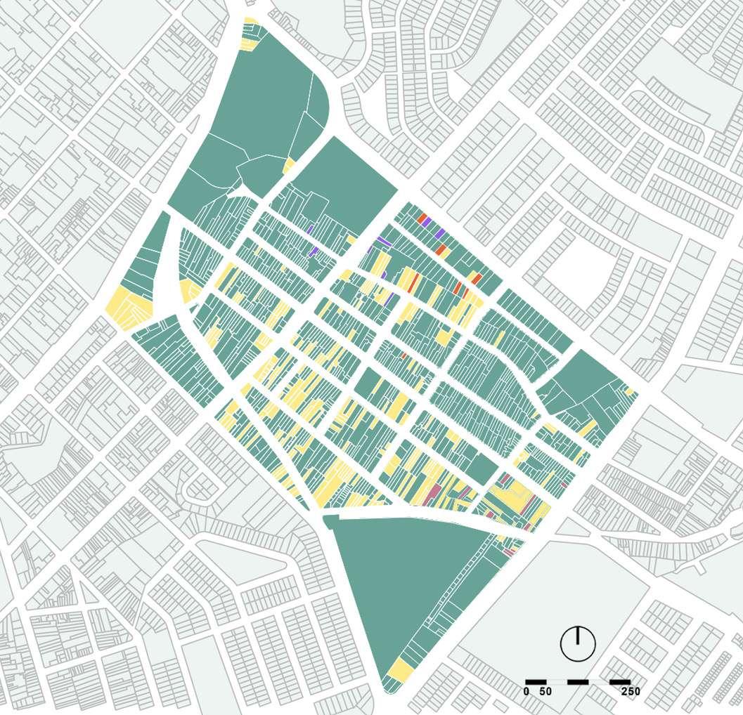 En relación a la cantidad de lotes edificados y ocupados dentro del sector con respecto a lotes vacíos, se observa que el sector en su mayoría se encuentra denso y compacto, ya que gran parte de su superficie está construida, constituyendo este a un 83.56% de la superficie total.