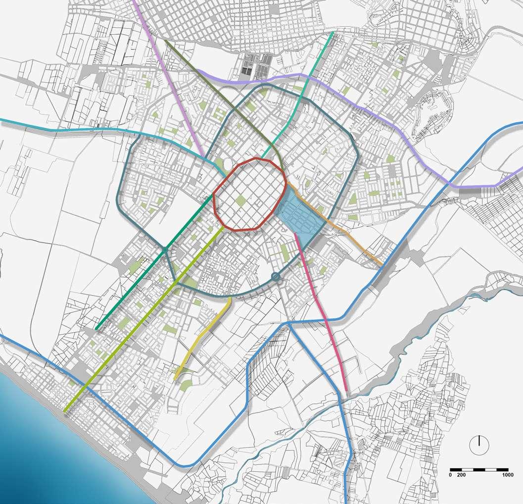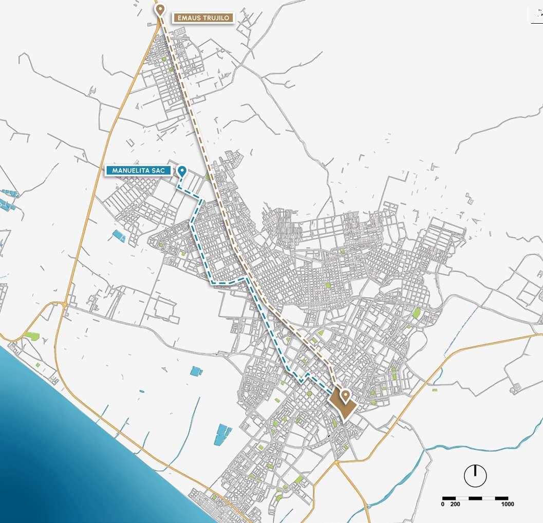 El sector de estudio, Chicago, se conecta con la ciudad de Trujillo a través de la Av. España. Esta avenida rodea el centro histórico y a su vez conecta con vías arteriales importantes que limitan el sector como la Av. Eguren, en donde se concentra gran actividad comercial de importancia para la zona.