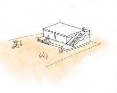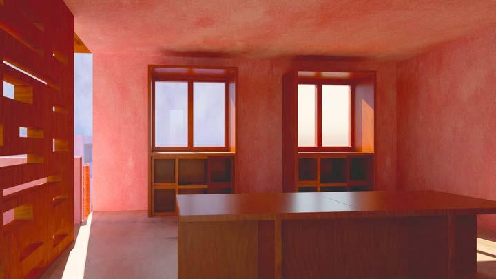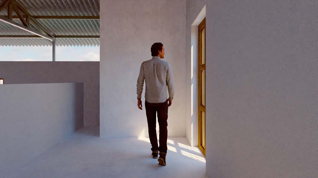 ElHalldeingresoesdedoblealturaportanto,esdeescala monumental, lo cual da la sensación de grandeza y amplitud que se puede interpretar como la importancia queselebrindóaesteespacioporquererdiferenciarlodel resto del proyecto, jerarquizando la entrada a este, ademásdeserunespacioabiertoalpúblico,seinterpreta quequizáelpropósitofuedarlasensacióndemimetizarse conelpatiodealfrenteyqueinvitealosciudadanosdea pieapasaryconocerellugarosimplemente,pasarelrato en este espacio sin la necesidad de acceder al proyecto. Continuado el recorrido, se encuentra la sala de usos múltiples,tambiénubicadoenlaplantabaja.Esunespacio deescalanormalconventanasconsecutivasquepermiten el paso de la luz de manera controlada, generando la sensación de comodidad y complicidad, ideal para la realización de actividades en comunidad dentro de un espacio más privado. A lado de este ambiente, se encuentra el almacén, un espacio cuya escala es íntima y dalasensacióndeserunlugarmásmisteriosoyoculto.En lasegundaplantaseencuentrauntallerdeelaboraciónde telares, que es de escala normal y un poco más privado, que brinda la sensación de ser un lugar más ameno, y alejado del exterior para la concentración de las actividades que se realizan en este ambiente. Asimismo, este espacio termina al pasar a la galeria, el cual a pesar de tener la misma escala, es un espacio más abierto al exterior.