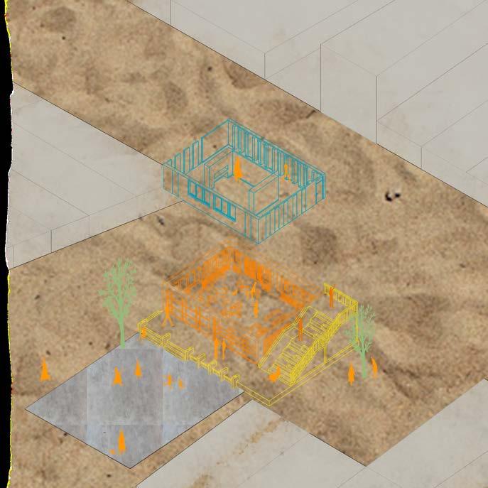 El patio es una zona destinada para la realización de diferentes actividades es por ello que se diseño el siguiente mobiliario que es un juego lúdico para niños, se empleo el color amarillo debido a que este toma mucho protagonismo y actuara sobre los problemas de dislexiaydéficitdeatenciónyaqueseleconoce como el color de la inteligencia, tambien genera actividadmentalyayudaalaconcentración. Esta diseñado para niños de 3- 13 años, es inclusivo, además este modelo es flexible y funcional ya que sirve tanto como espacio de lecturacomolúdico,estacontienevegetaciónen su interior para que los niños aprendan a tener conciencia acerca de la naturaleza que les rodea,sebuscaunaformaquelosniñospuedan jugaryalamismavezaprendan.Losmateriales utilizadosparaestemobiliariosonsosteniblesya que se usan retazos de maderas para luego lijarlos y darle una consistencia suave, por consiguiente es ensamblado y pintado. Con respecto a la maceta de la vegetación es elaboradoapartirdebotellasrecicladasqueson comprimidas en láminas para darle la forma de maceta y la planta es propia del lugar que sirve para dar sombra al mobiliario. Es por ello que estoesbastanteaccesibleparaserelaborado.