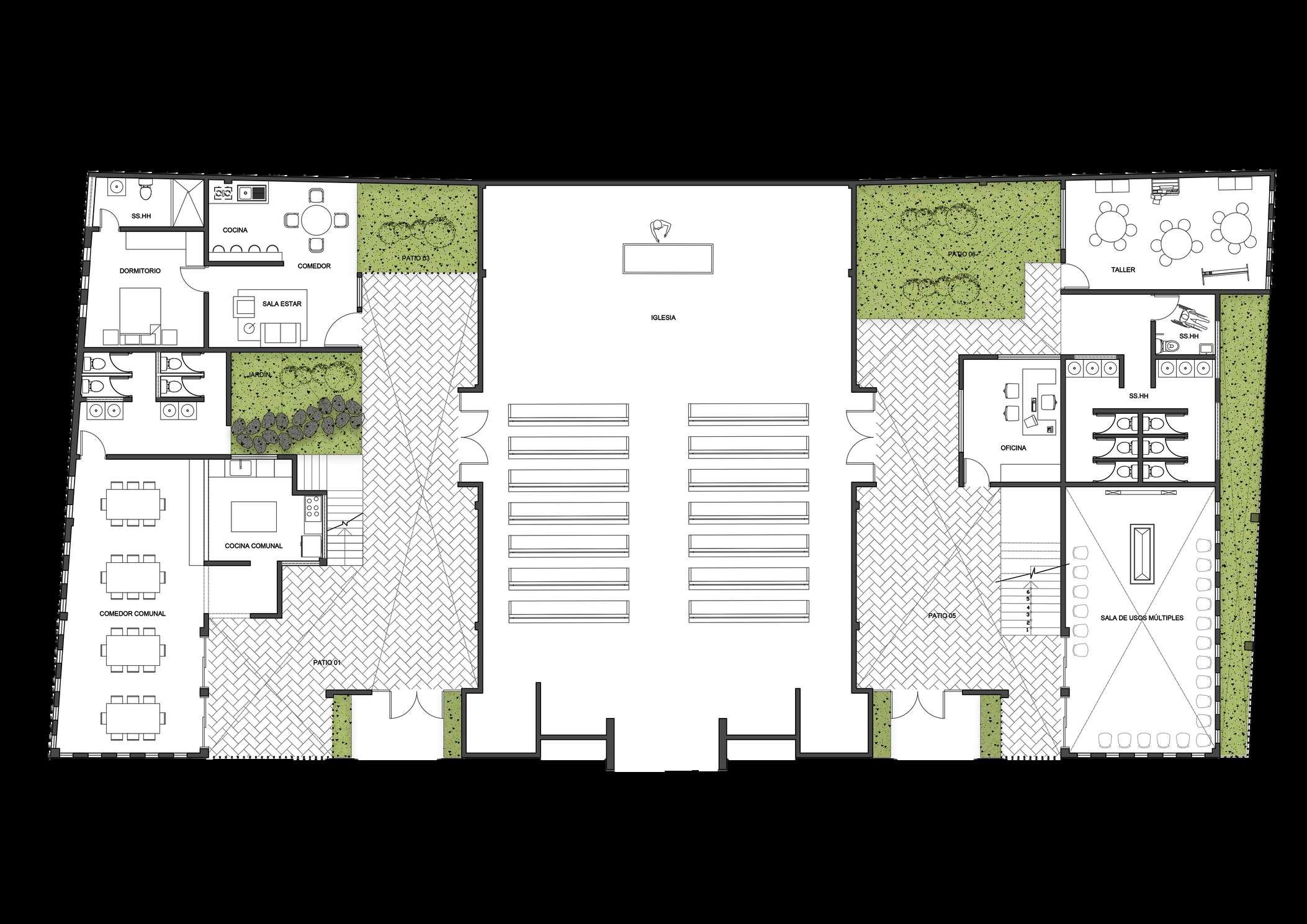 Desde sus primeras etapas, la esencia de este proyec o radicó en e diseño de espacios que respond eran d rectamente a las necesidades tanto de los habitantes como de la unta de la glesia ocal, con el propós to de crear un entorno que transm tiera autenticidad y pertenencia.