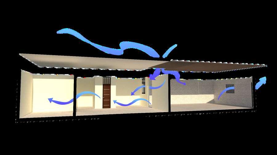 Para la cubierta alzada de los techos, se propuso e uso de pol carbonato para ofrecer una lum nación natural aun mas potente.