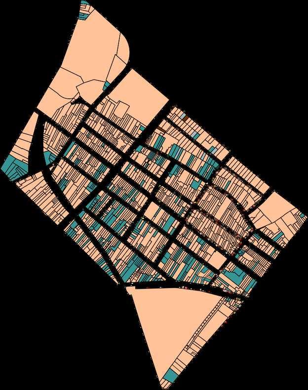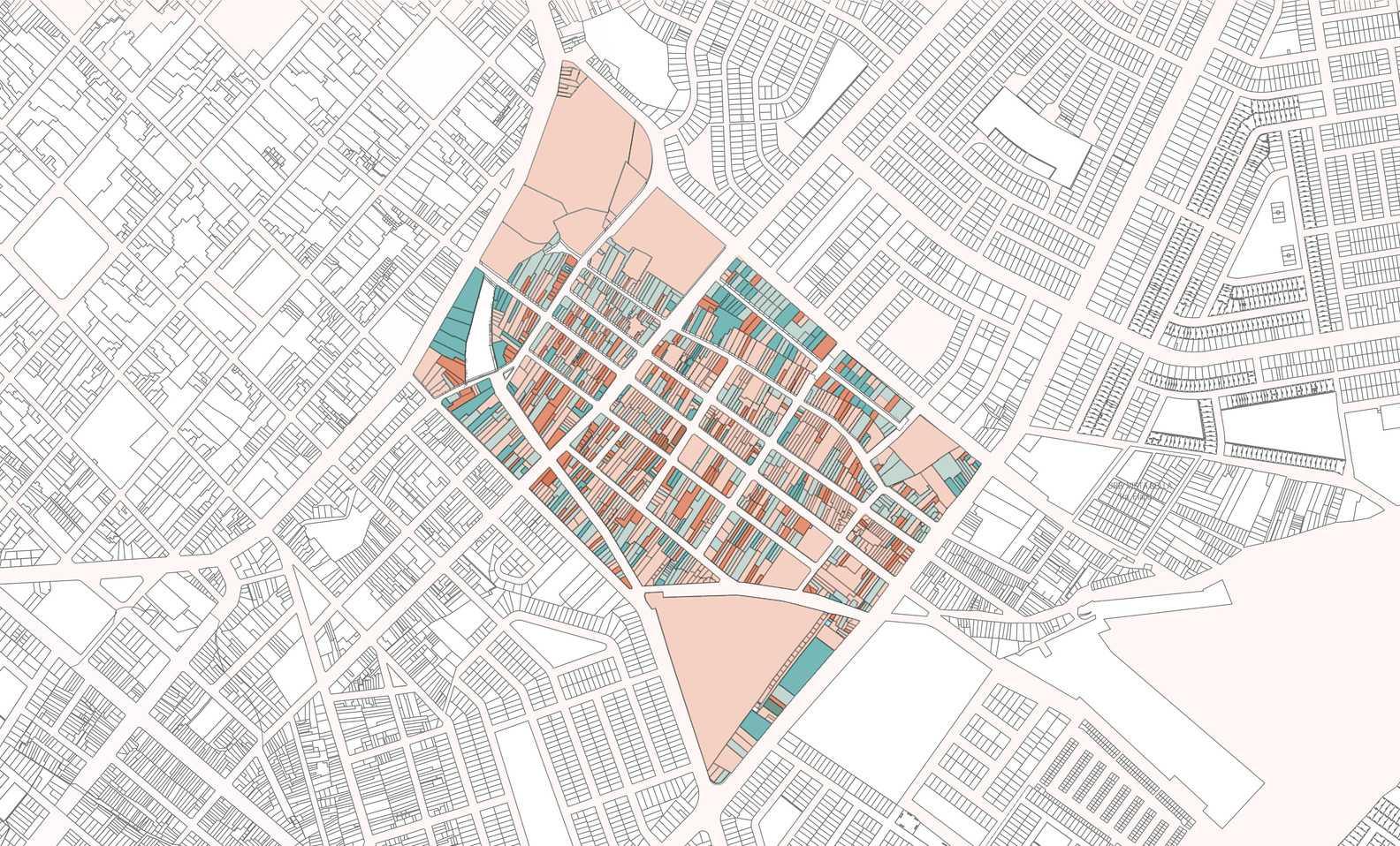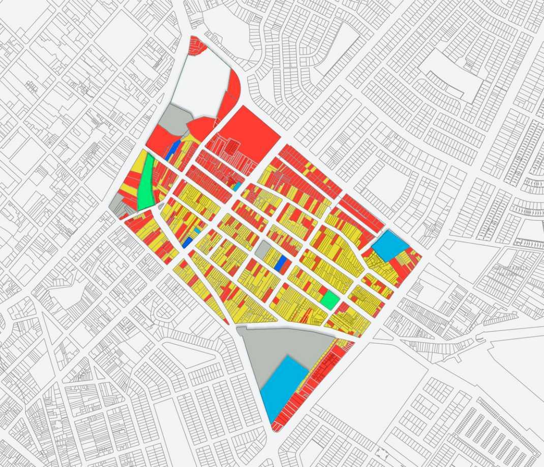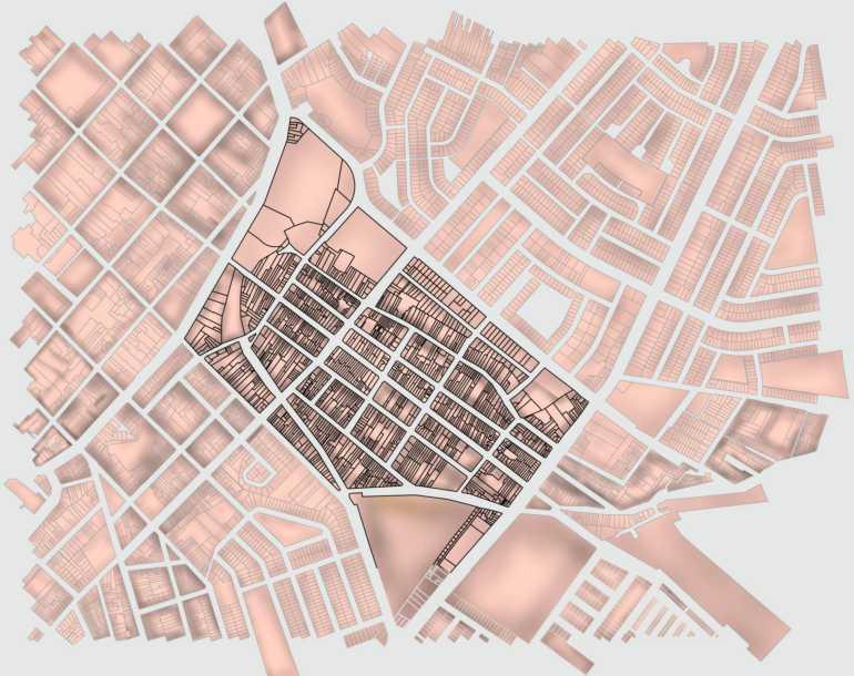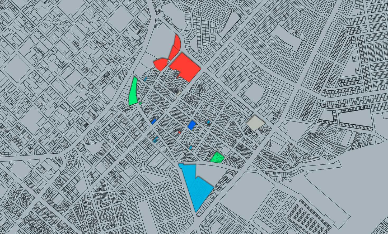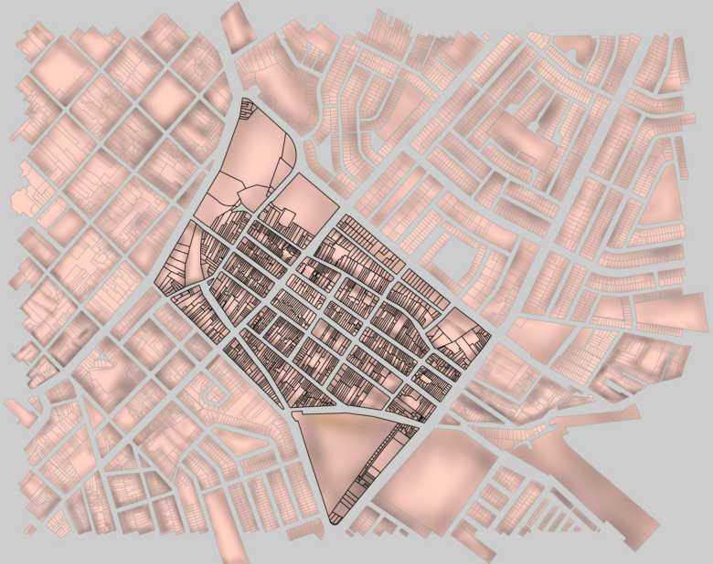 El área seleccionada cuenta con 489.612,59 m2 , en la que encontramos 40 manzanas donde en total se hallan 2292 lotes, la mayoría de uso comercial donde si bien se generan muchos puestos de trabajo, estas se desarrollan de manera desordenada