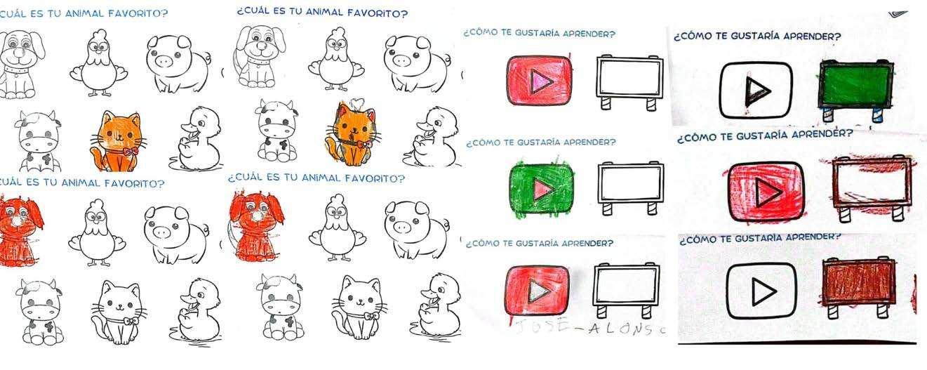 Duranteeltaller,losniÒostuvieronlaoportunidad de participar en diversas actividades l˙dicasquelespermitieronexplorarsuspreferencias de manera divertida y educativa. Les pedimos que seleccionaran im·genes de sus animalesfavoritosyquedescribieranlasactividades que m·s disfrutan. TambiÈn les presentamos opciones para el aprendizaje, como pizarra y televisiÛn, y les pedimos que indicaran cu·l de estos mÈtodos prefieren para recibir instrucciÛn en el aula.