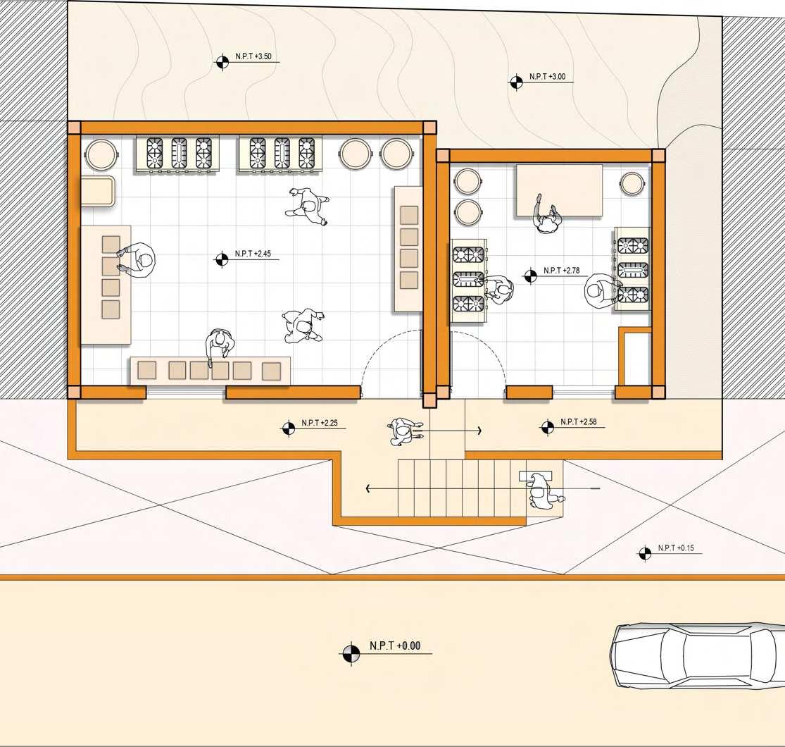 EnelJardÌndeNiÒos"EstrellitasdelSaber",la distribuciÛn y circulaciÛn vertical est·n cuidadosamente diseÒadas para reflejar la especialidad y funcionalidad del edificio. La circulaciÛn vertical se organiza alrededor de una escalera roja, que act˙a como el n˙cleo central del jardÌn. Este elemento no solo sirve como el principal punto de accesoentrelosdiferentesnivelesdeledificio,sinoquetambiÈndestacaporsudiseÒo distintivo y funcional.