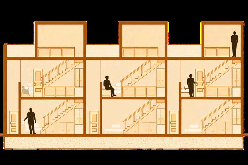Laorganizacióndeledificiorespondeaun criterioclarodeeficienciayorden.Desde el acceso principal se establece un recorridojerárquicoqueorientaalusuario, diferenciando con precisión los espacios decarácterpúblico,semiprivadoyprivado. Estaestructurafacilitaeldesplazamientoy aportacoherenciaalconjunto.