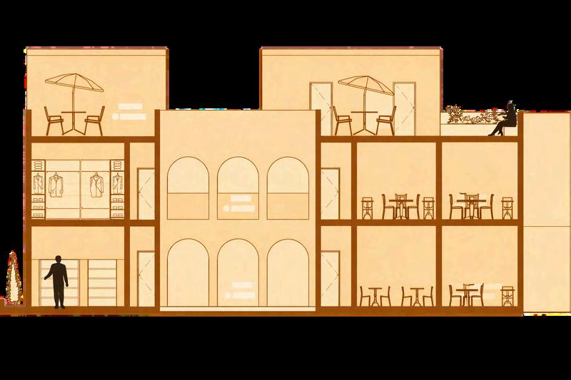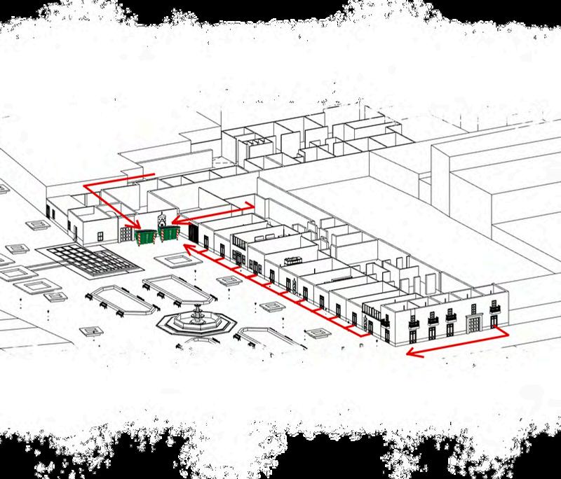 Lapropuestabuscógenerarunambiente cercanoyaccesible,dondelaculturayel comercioseintegrencomopartedeuna mismaexperiencia.Elrecorridointeriorse planteó de forma clara y continua, permitiendoqueelvisitantedescubralos espacios de manera gradual y sin perder lareferenciadelentornohistórico.