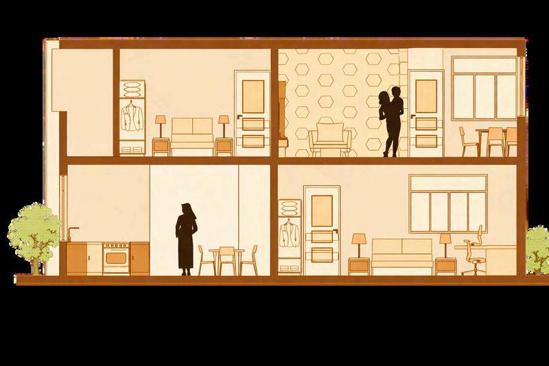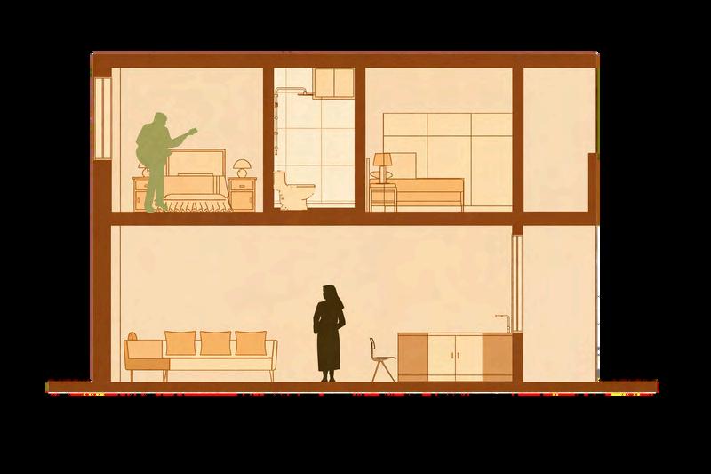 Enelinteriordelasviviendas,seentrega mobiliario fijo modular fabricado en tableros de madera certificada, diseñado paraaprovecharcadarincónyadaptarsea las diferentes etapas de la vida de los residentes.