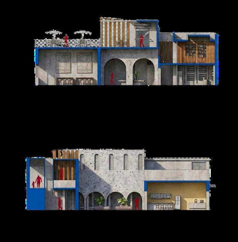La propuesta arquitectónica construye atmósferas a partir de la relación entre espacio, materialidad y uso, buscando generar una experiencia sensible y coherente con el contexto urbano. Las transiciones entre áreas públicas y privadas se resuelven mediante variaciones de escala, luz y apertura, permitiendo que cada espacio adquiera uncarácterpropio.Estasatmósferasnose imponen, sino que se configuran de maneraprogresivaalolargodelrecorrido.