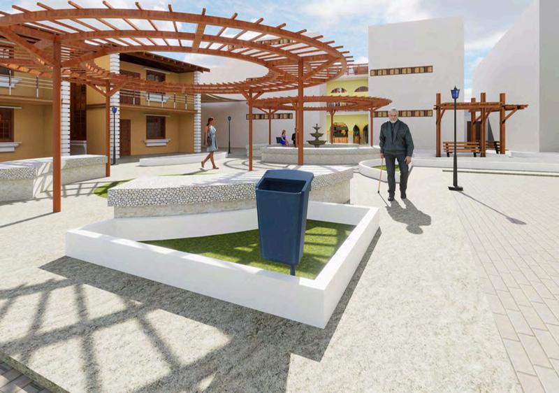 Para los espacios públicos, se han proyectado bancos corridos de concreto que emergen del diseño del suelo, integrándose con las jardineras para optimizarelespaciodepermanencia.