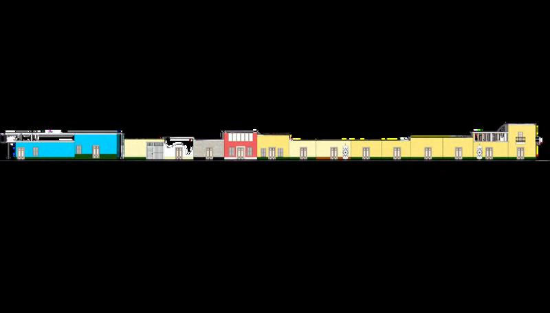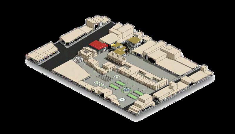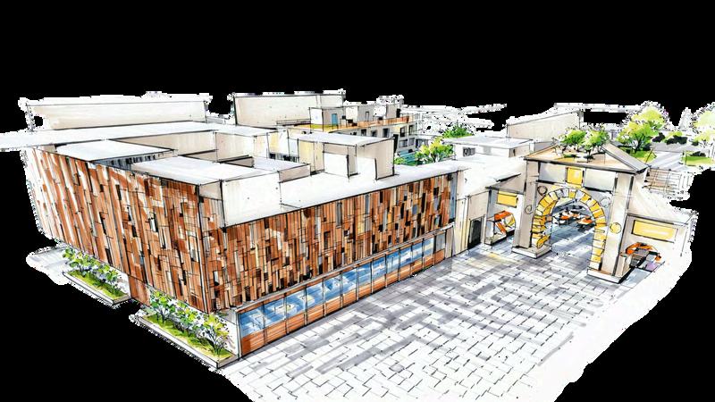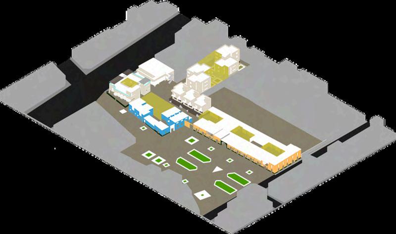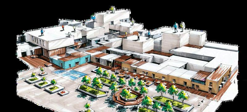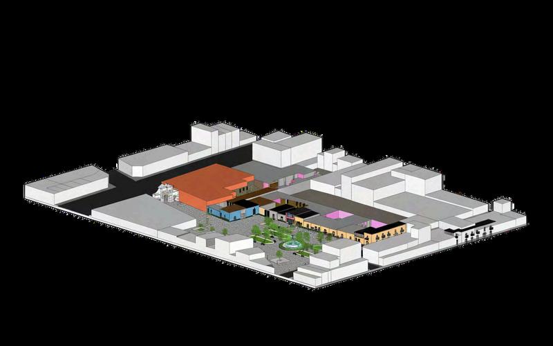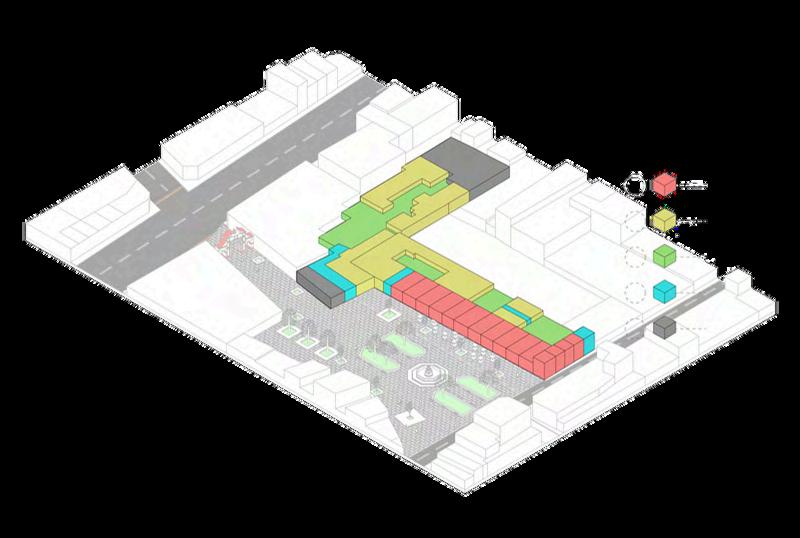 El bloque comercial se abordó como un espacio flexible y adaptable. Durante su desarrollo, se reflexionó sobre su capacidadparaactivarelentornourbano yfortalecerlarelaciónentreeledificioyla ciudad,entendiendoelcomerciocomoun usodinámicodentrodelconjunto.