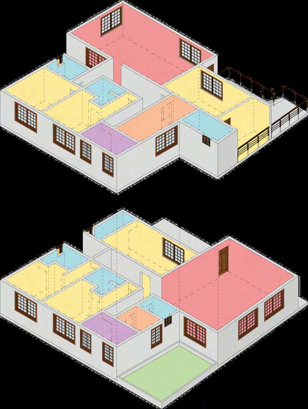 La relación entre interior y exterior se mantienefluidagraciasaladisposiciónde patios y corredores, que permiten la entrada de luz natural y ventilación cruzada. Este planteamiento no solo enriquecelaexperienciaespacial,sinoque también responde al clima de Lima, adaptando la arquitectura a su entorno inmediato.
