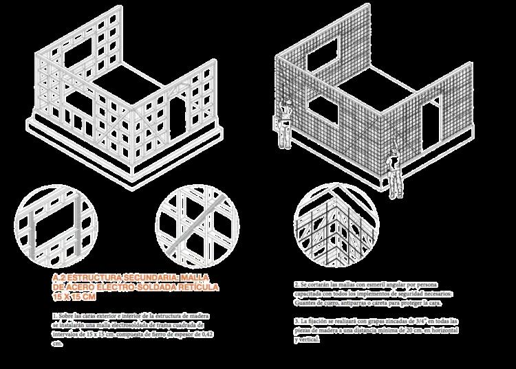 El sistema de cerramiento se concibe como un componente esencial en la definiciónarquitectónicadelconjunto.Los murosdeadobeyquinchaaportansolidez y estabilidad, al mismo tiempo que regulan de manera eficiente la temperatura interior frente a las condicionesclimáticasdeLima.