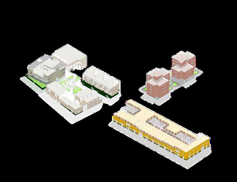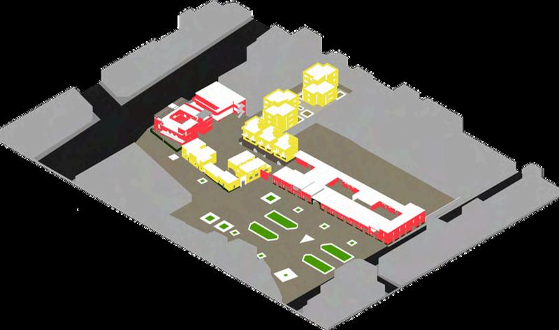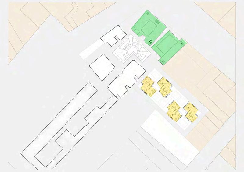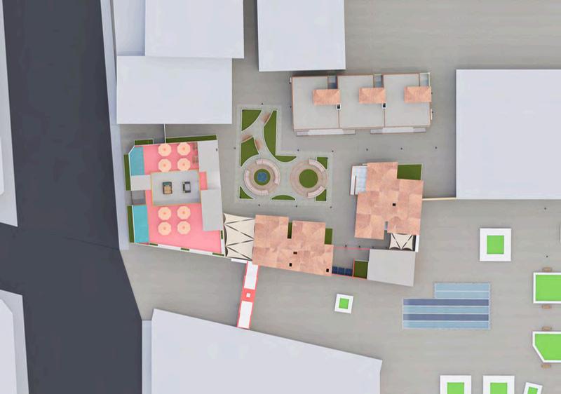 La implantación urbana fue una etapa claveeneldesarrollodelproyecto.Através de distintas pruebas de emplazamiento, se evaluó la relación del conjunto con la trama urbana existente, destacando el papeldelaplazacentralcomoelemento organizadorydeconexiónconelespacio público.