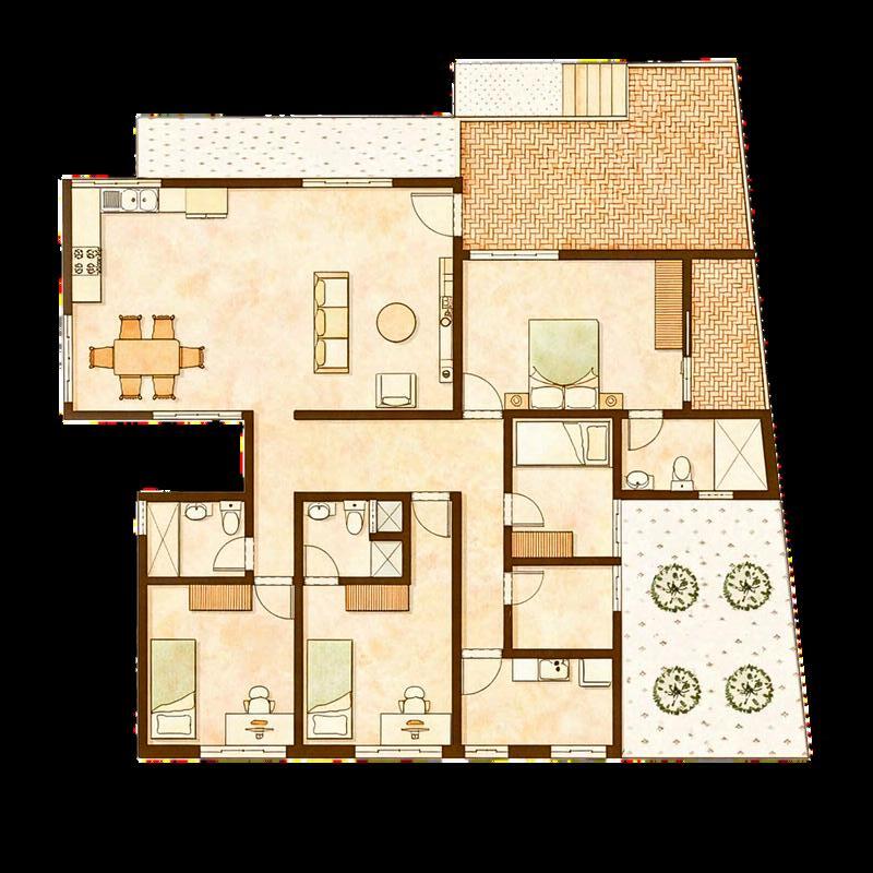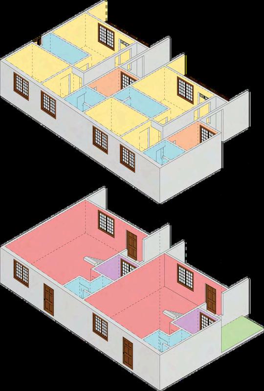 Eneldiseñodelasviviendas,elprocesose centró en la distribución eficiente de los espacios interiores. Se analizaron recorridos, jerarquías y relaciones entre áreas sociales y privadas, buscando generar ambientes confortables, bien iluminadosyventilados.