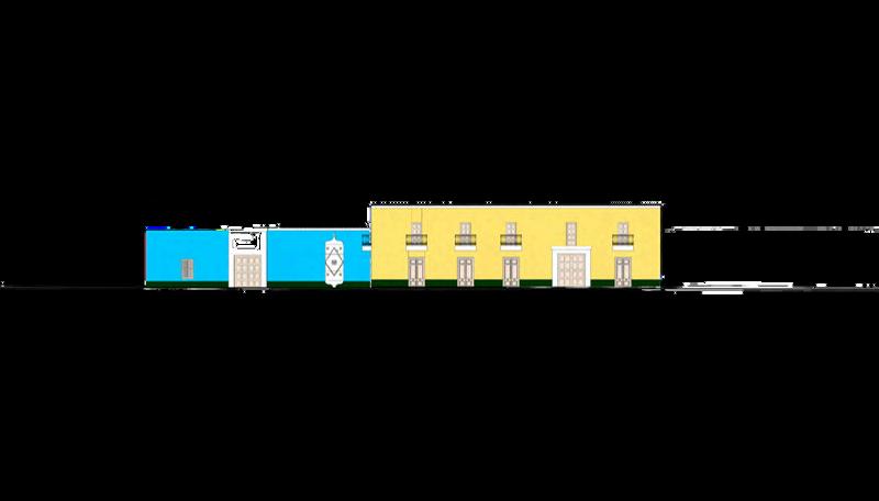 Lavolumetríadelaedificaciónsearticula atravésdecuerposprincipalesclaramente definidos, enmarcados por jardines que refuerzansucarácterseñorial.Predomina lasimetríaenlacomposición,recursoque otorga orden y equilibrio a la obra, al mismotiempoqueresaltalaimportancia delaccesoprincipal.