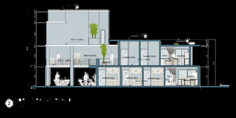 En el desarrollo de las tipologías de vivienda, la atención se centró en proyectar unidades habitacionales que maximicenlacalidadespacialmedianteel usodevacíosydoblesalturas.