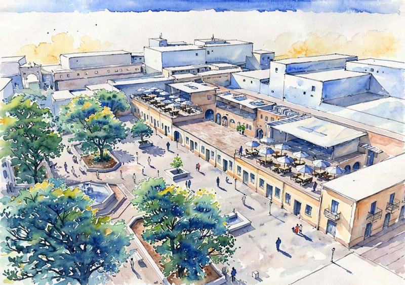 Al transitar desde la vibrante Plazuela El Recreohacialoszaguanespenumbrosos, el usuario experimenta una dilatación sensorialalllegaralaplazacentralbañada porluztamizada.