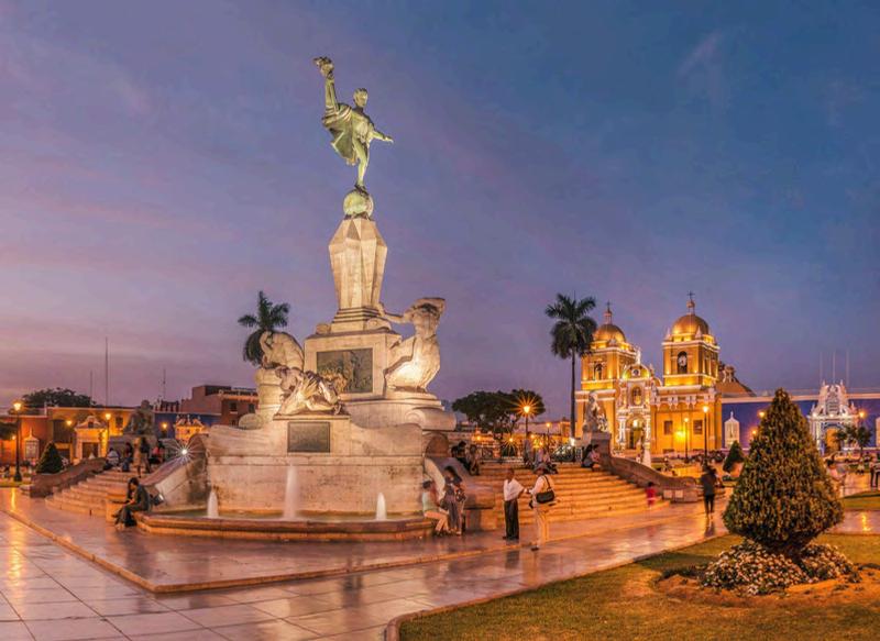 ElcentrohistóricodeTrujilloseremontaa la fundación de la ciudad en 1534 por Diego de Almagro, en nombre de FranciscoPizarro.Latrazainicialrespondió al modelo de damero castellano, característico de las ciudades hispanoamericanas, con una plaza mayor como núcleo central y manzanas rectangularesqueconfigurabanelespacio urbano. Desde su origen, Trujillo se consolidócomounaciudadestratégicaen lacostanortedelVirreinatodelPerú.