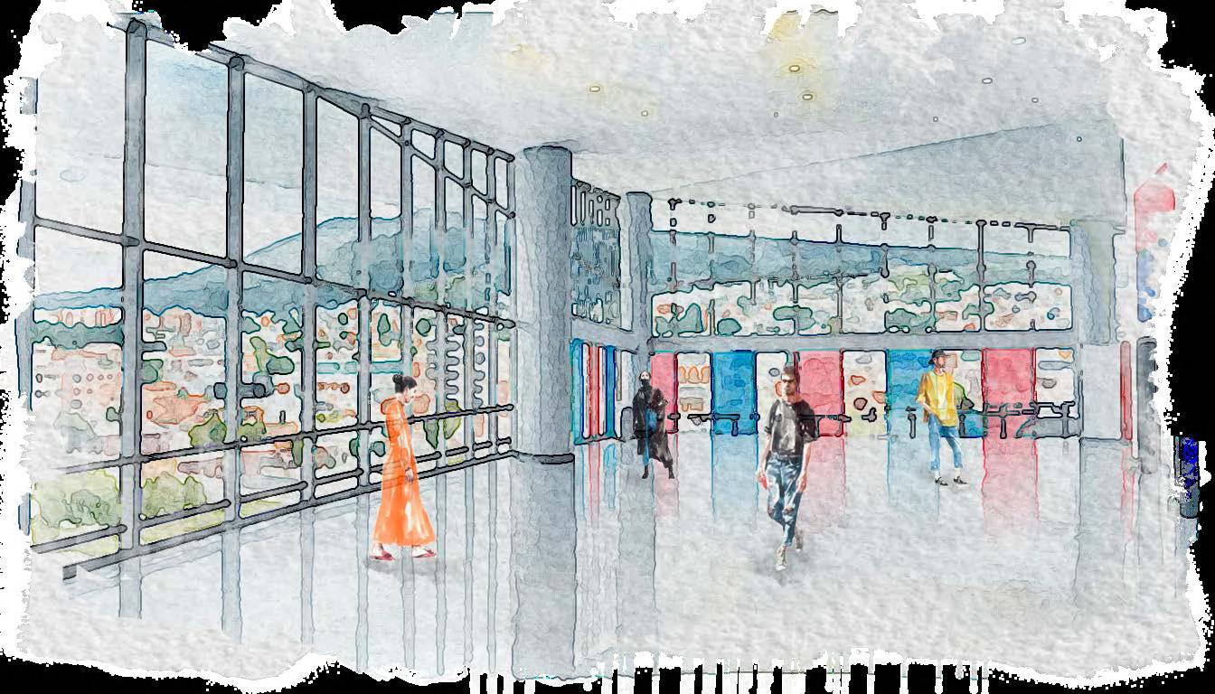 Lafachadaacristaladafavoreceelingreso abundante de luz natural y la conexión visual interior–exterior. Esta condición reduce la dependencia de iluminación artificial y aporta amplitud a los espacios. La ventilación se logra con aperturas estratégicas y sistemas mecánicos, garantizandoconforttérmicoyrenovación de aire, esenciales para auditorios y salones de exposición, garantizando asi unbuenyfuncionamientoesapacial.