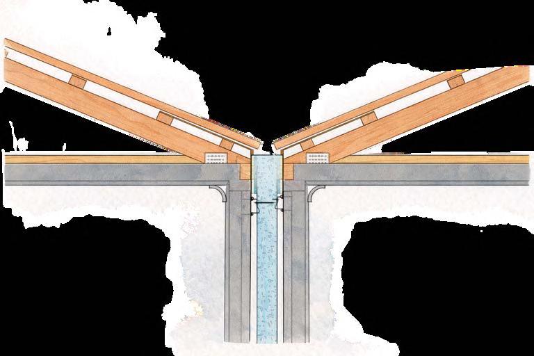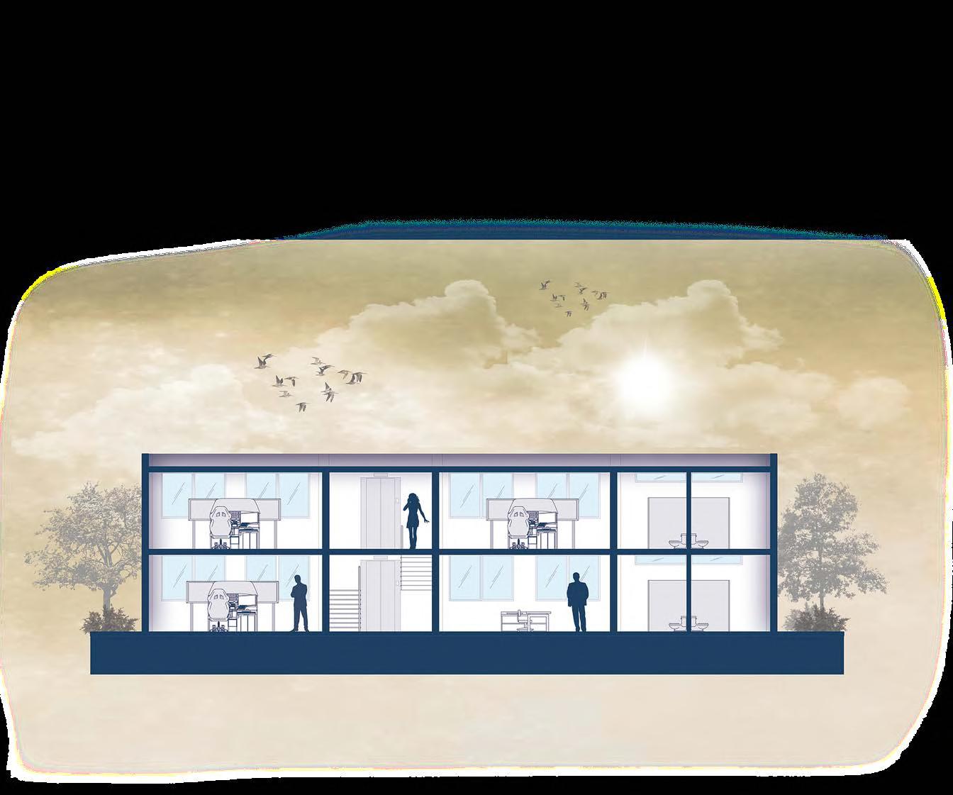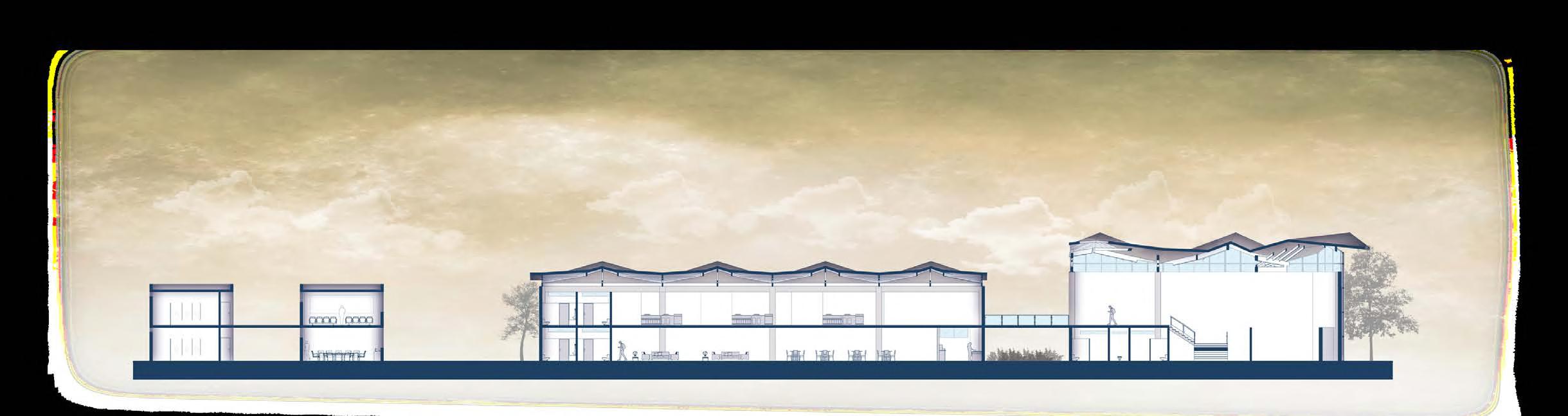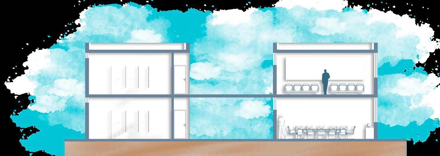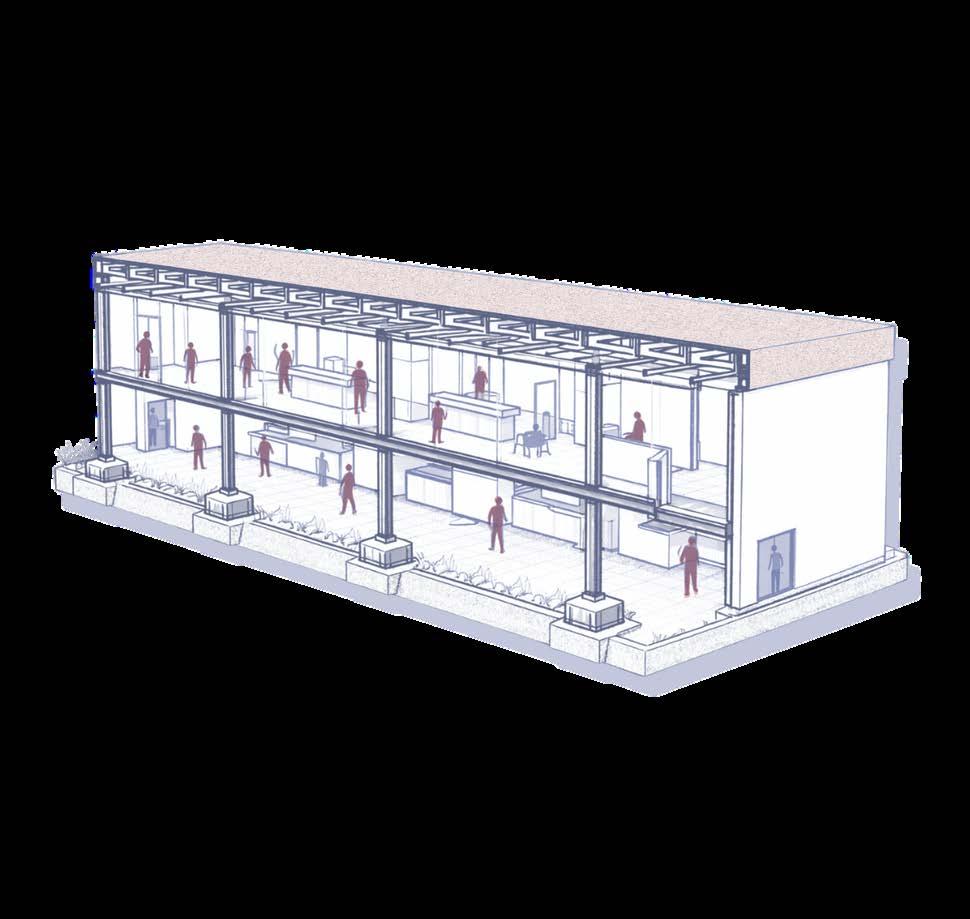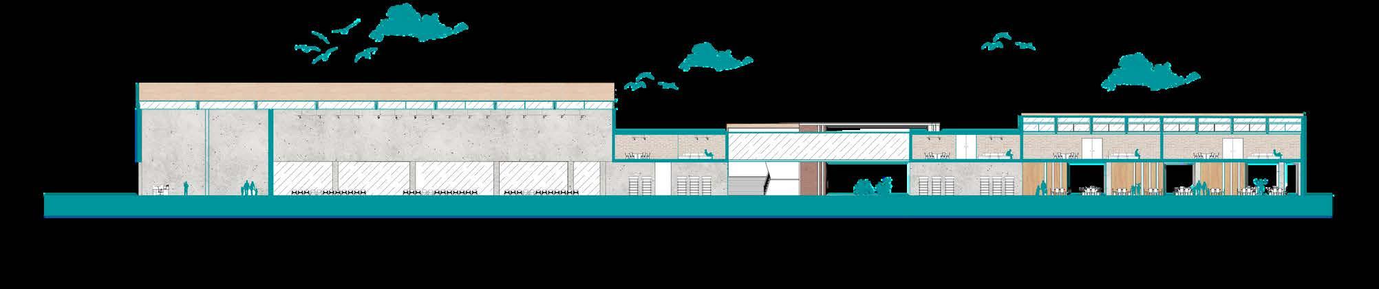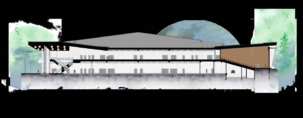 y manteniendo un ambiente fresco y saludable que favorece la concentración de los estudiantes mediante métodos pasivos. La flexibilidad del sistema estructural permitequelascorrientesdeairecirculen sin obstáculos significativos a través de las plantas. Gracias a la combinación de inerciatérmicaenlabaseyligerezaenla cubierta, el edificio logra un confort higrotérmico óptimo sin depender de sistemasdeclimatizaciónmecánicos.