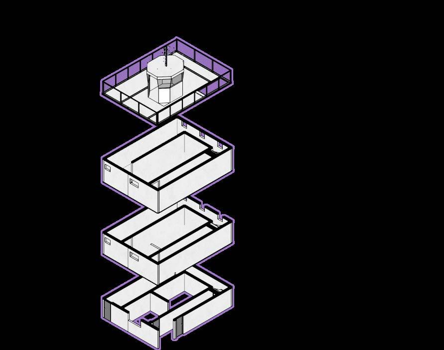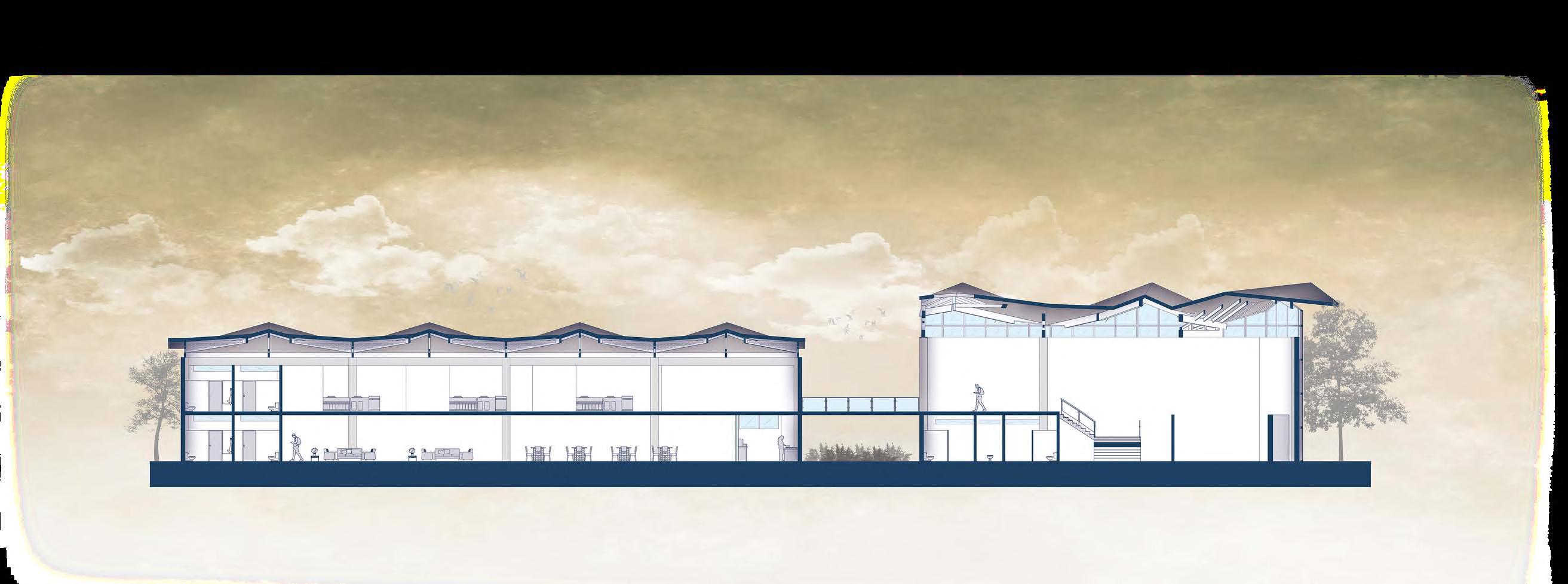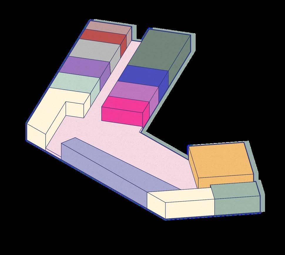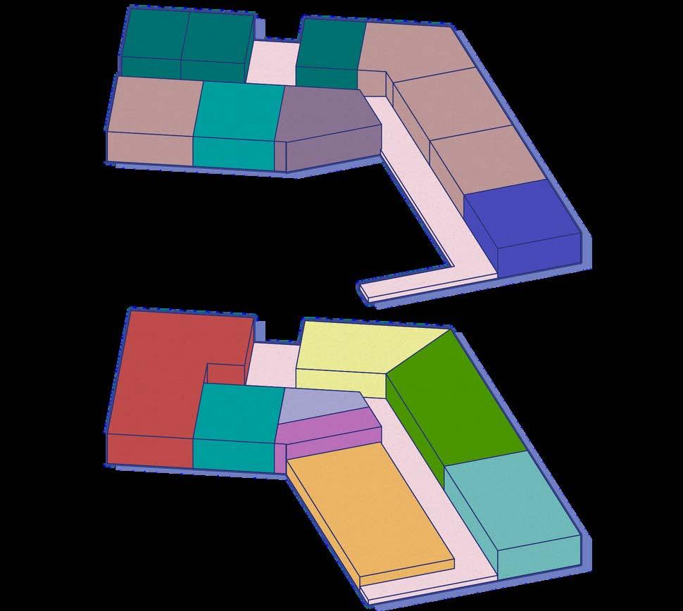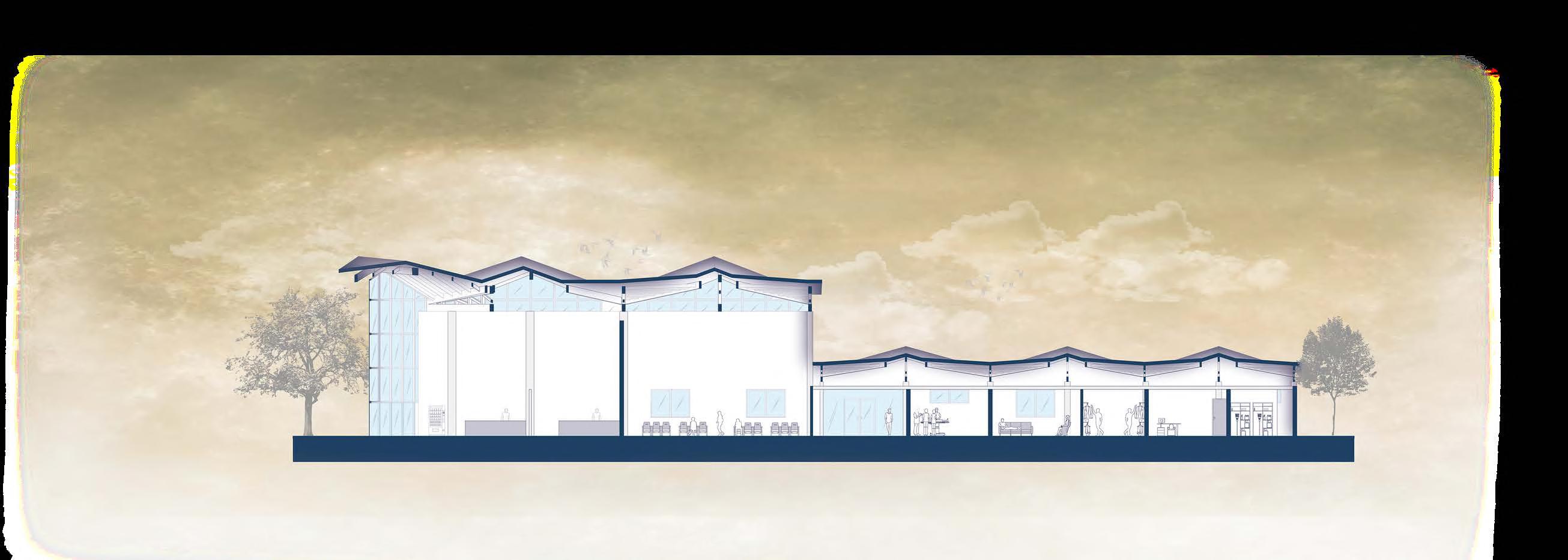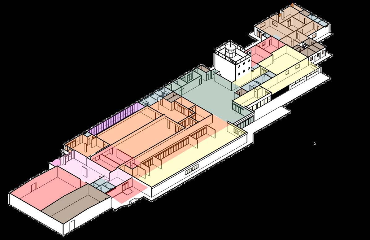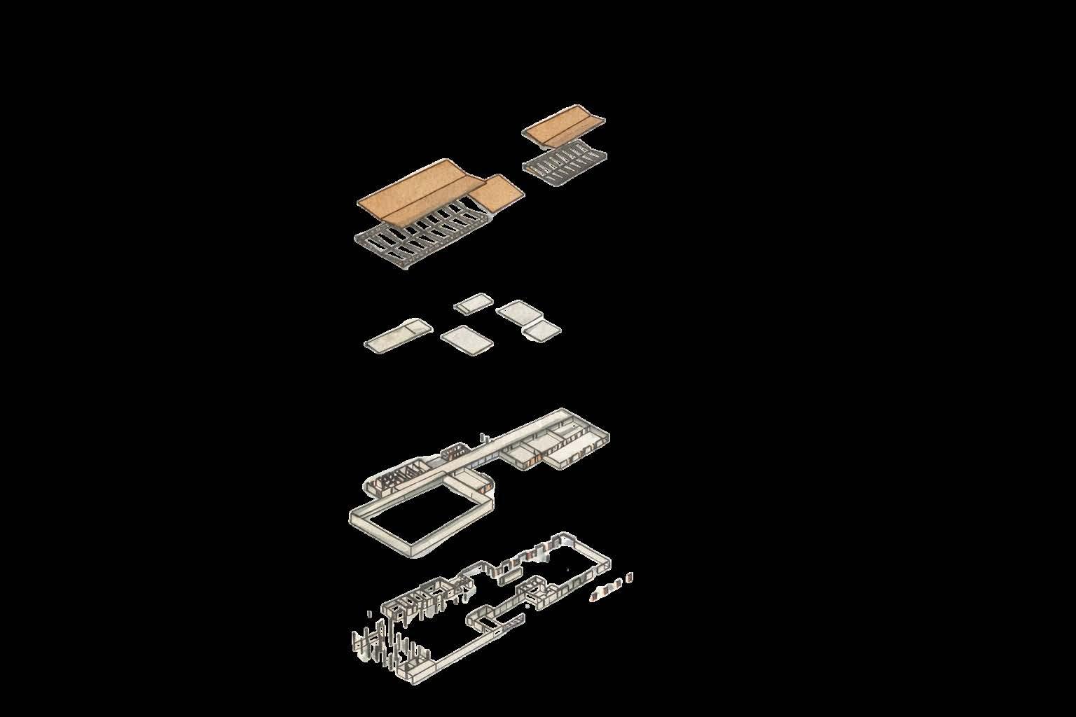 y manteniendo un ambiente fresco y saludable que favorece la concentración de los estudiantes mediante métodos pasivos. La flexibilidad del sistema estructural permitequelascorrientesdeairecirculen sin obstáculos significativos a través de las plantas. Gracias a la combinación de inerciatérmicaenlabaseyligerezaenla cubierta, el edificio logra un confort higrotérmico óptimo sin depender de sistemasdeclimatizaciónmecánicos.