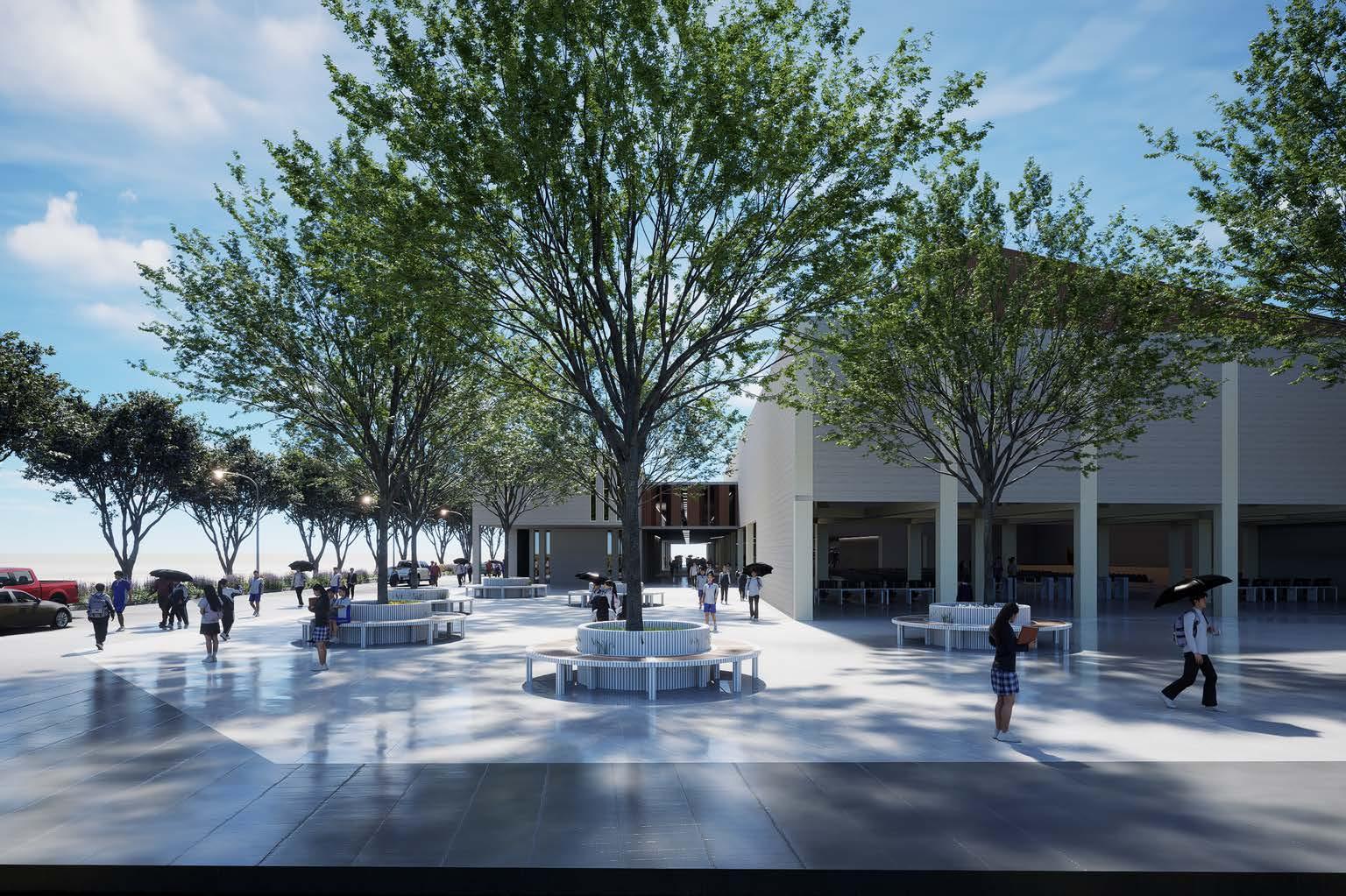 El lenguaje exterior integra aleros, parasolesycelosíasquefuncionancomo filtros solares y protecciones frente a la lluvia.Estoselementosmejoranelconfort ambiental, refuerzan la escala humana y aportandinamismoconsombras,texturas y variaciones de luz que rompen la monotonía de las fachadas. La articulación de espacios abiertos y cerrados se resuelve con transiciones suaves que equilibran monumentalidad y proximidad, mientras que el empleo de materialesadecuadosyacabadosneutros refuerzalasostenibilidadylaintegración conelentornourbanoinmediato.