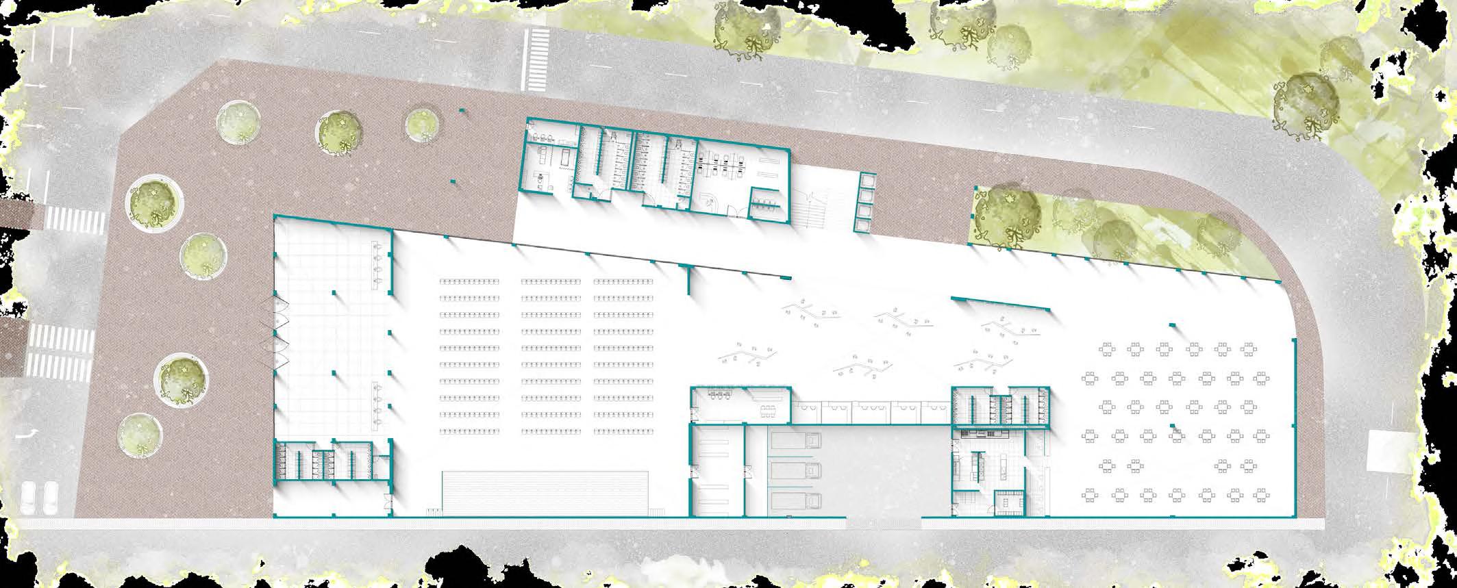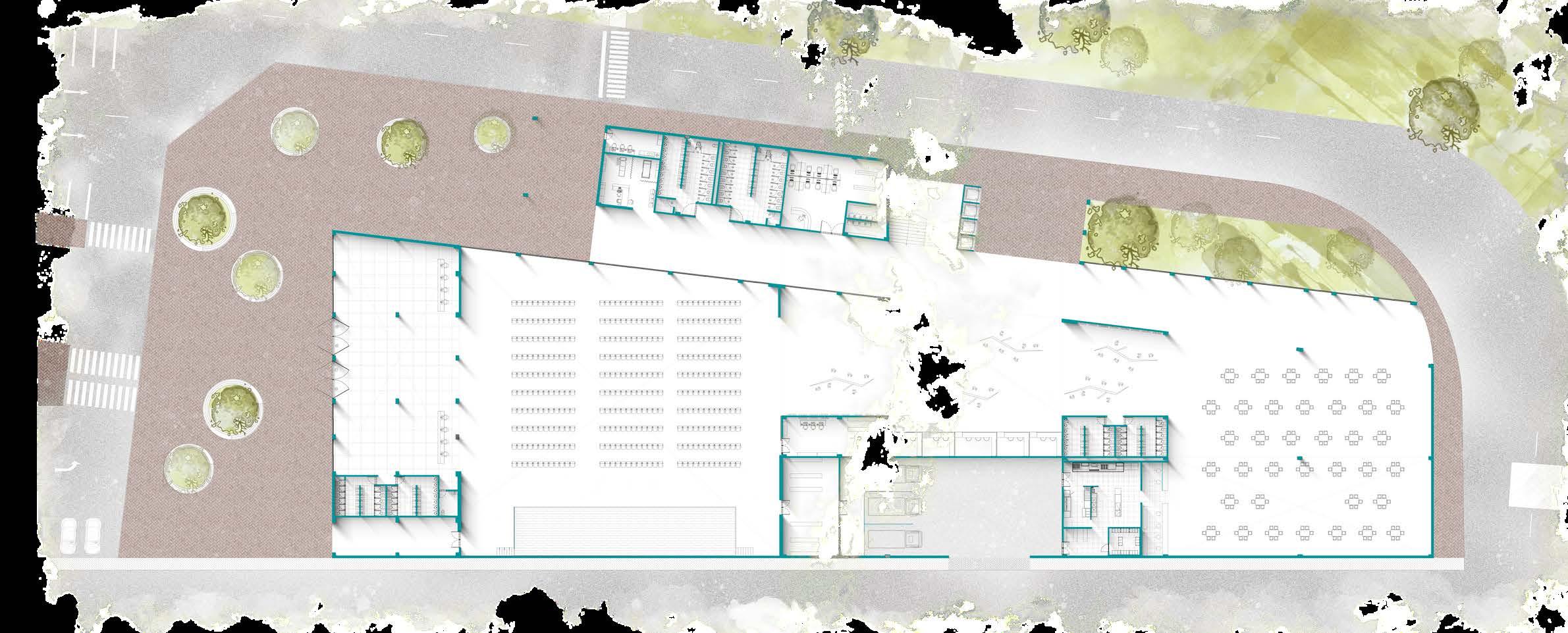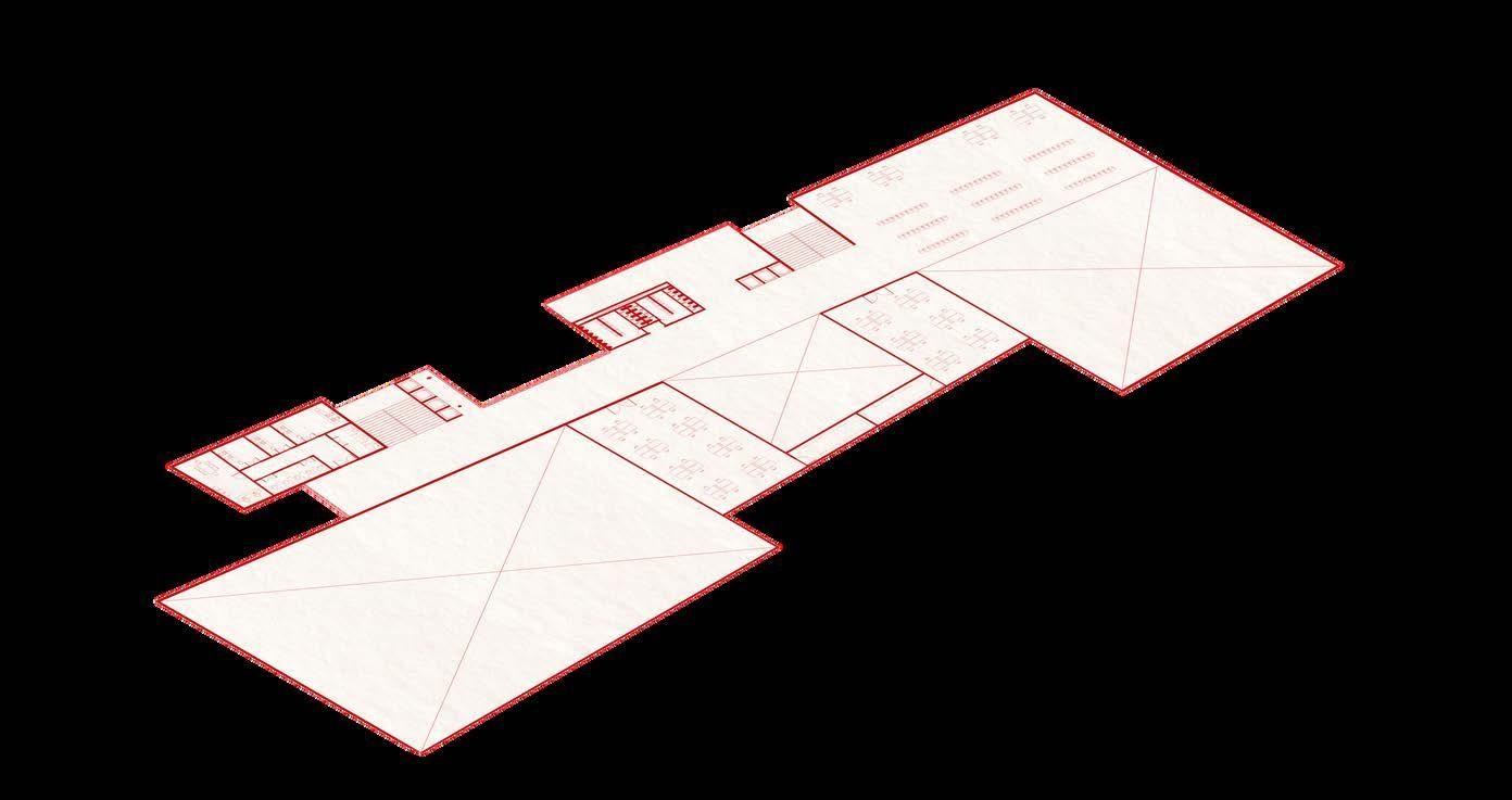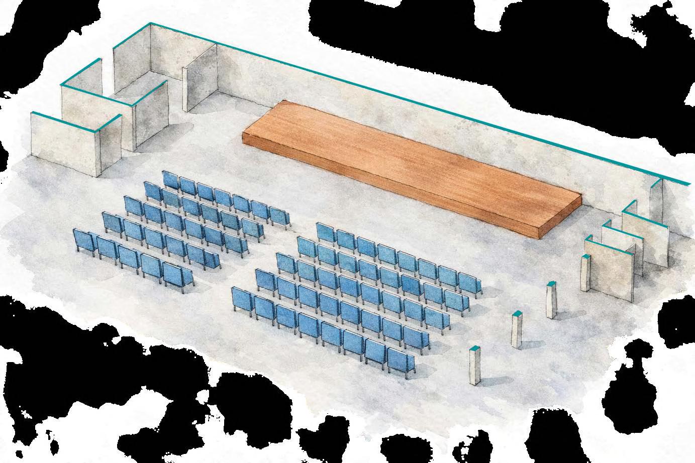 Elauditorioposeebutacasfijasdispuestas para garantizar visibilidad y acústica óptimas, mientras que los salones de exposición combinan un gran espacio central con áreas menores periféricas paraactividadessimultáneas.Elmobiliario seorganizademanerafuncionalparano obstaculizar pasillos ni zonas de circulación. La presencia del hall y las áreas intermedias facilita la transición entre ambientes y refuerza el carácter multifuncional del conjunto, permitiendo adaptarseadistintasescalasdeevento.