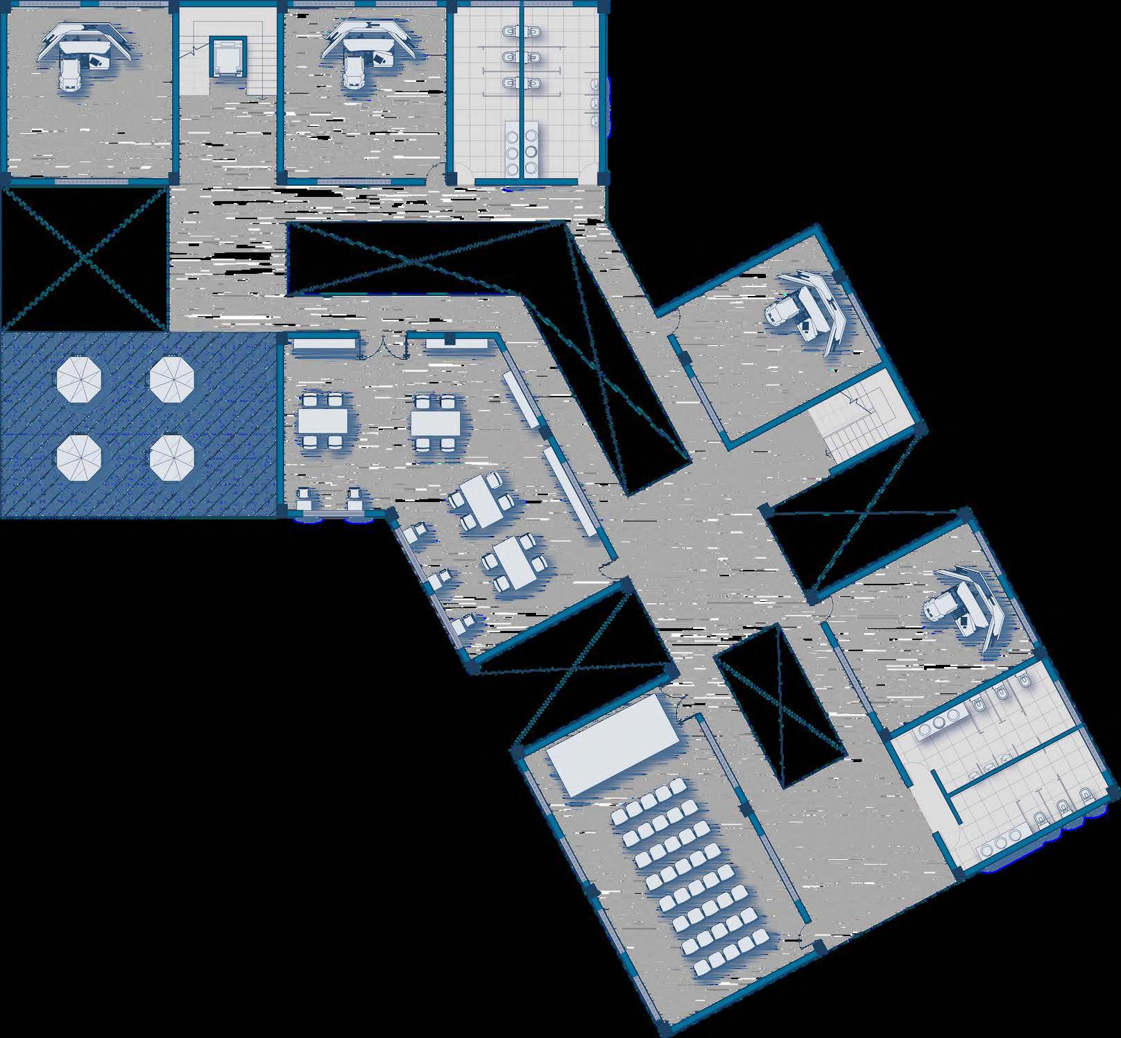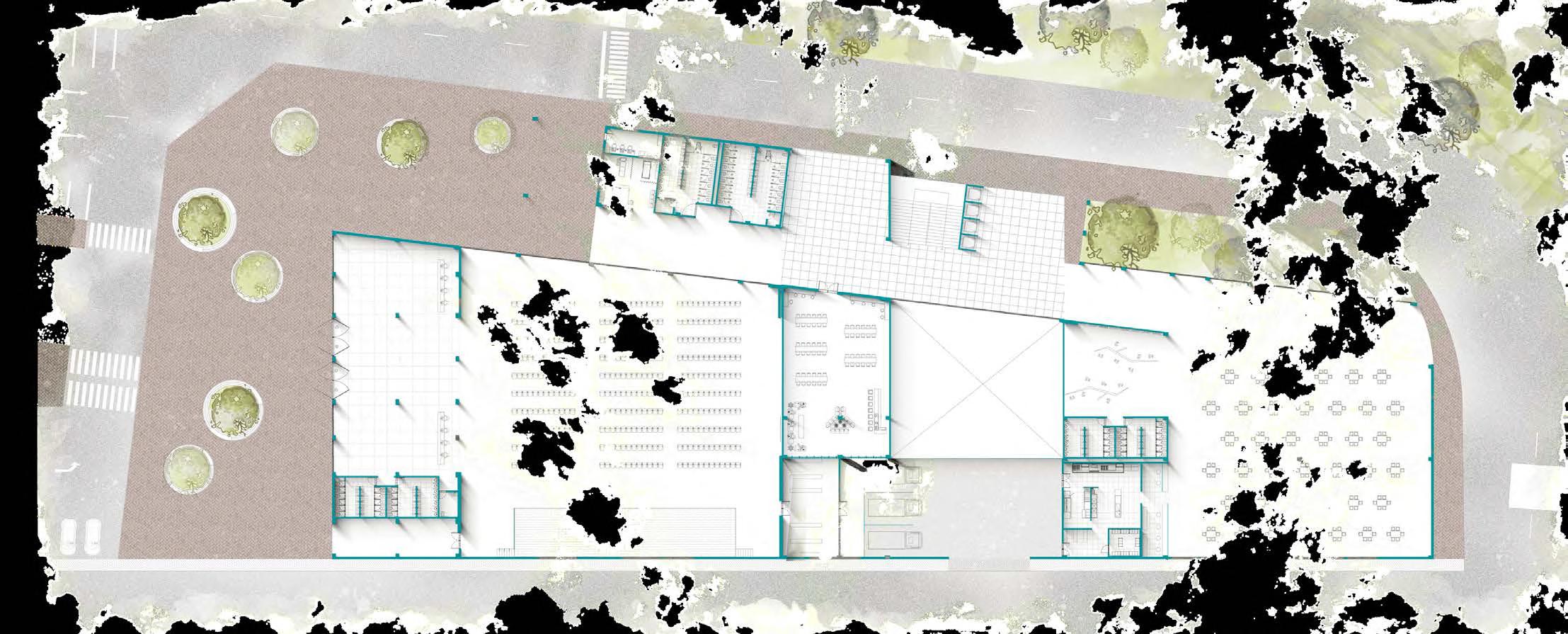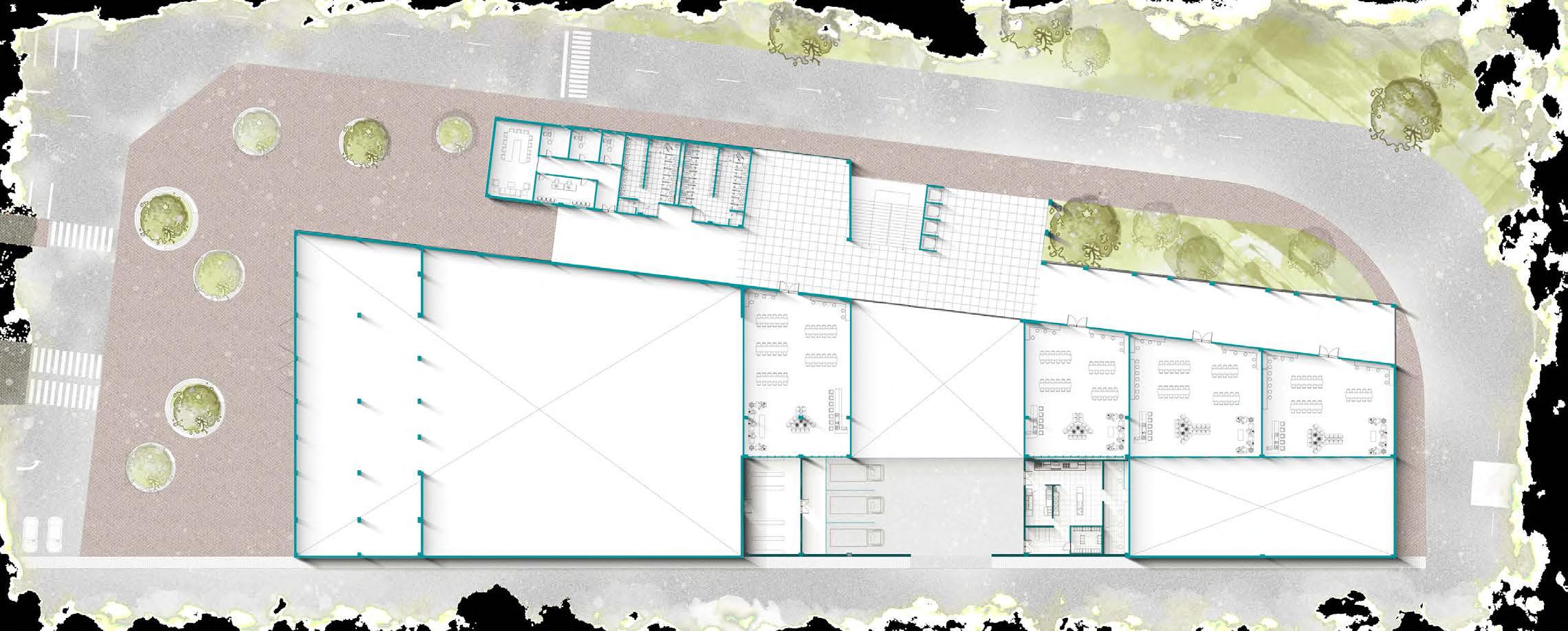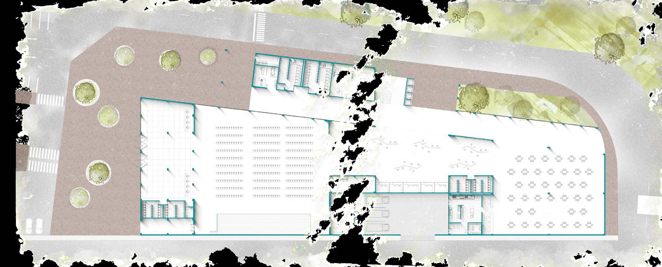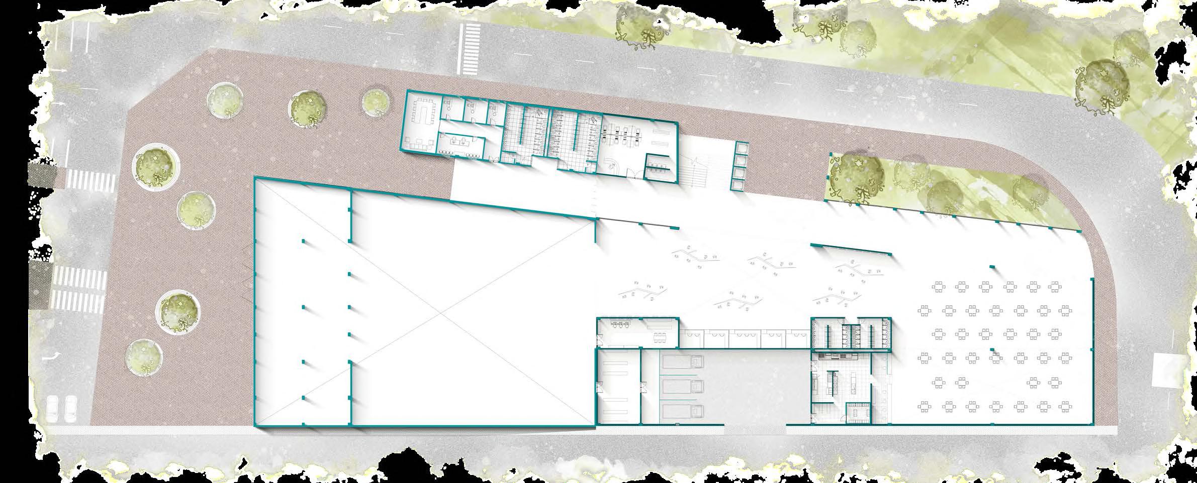Elauditorioposeebutacasfijasdispuestas para garantizar visibilidad y acústica óptimas, mientras que los salones de exposición combinan un gran espacio central con áreas menores periféricas paraactividadessimultáneas.Elmobiliario seorganizademanerafuncionalparano obstaculizar pasillos ni zonas de circulación. La presencia del hall y las áreas intermedias facilita la transición entre ambientes y refuerza el carácter multifuncional del conjunto, permitiendo adaptarseadistintasescalasdeevento.