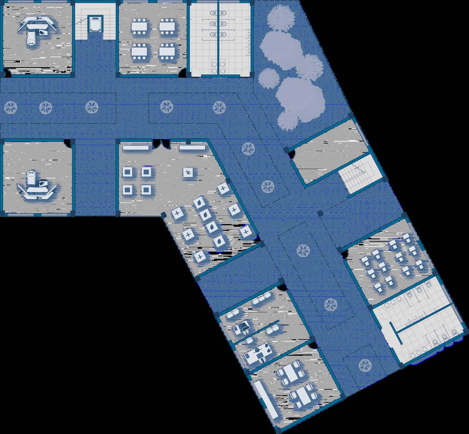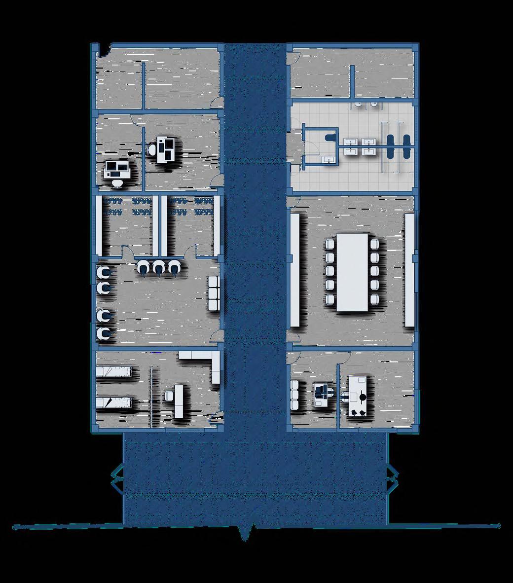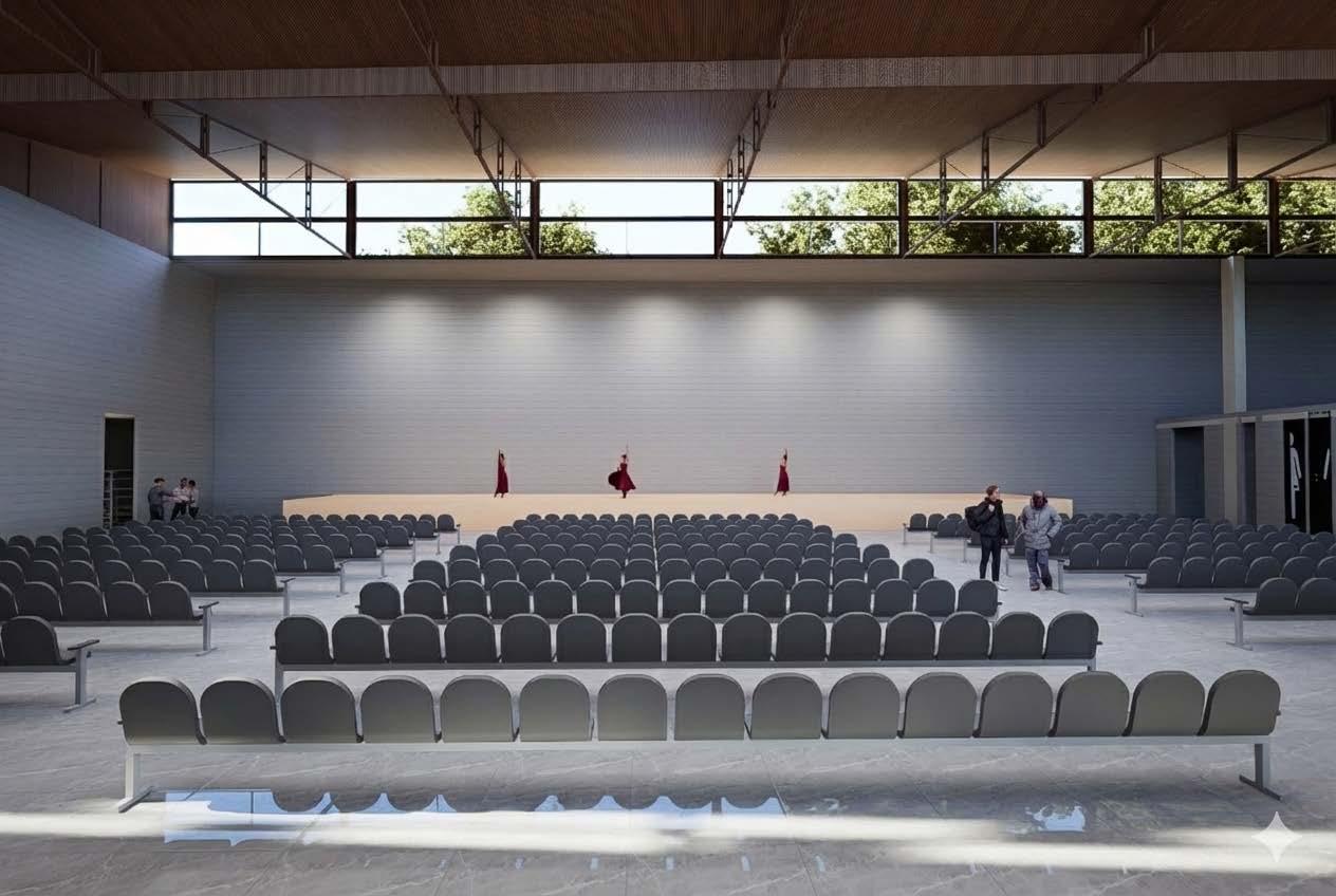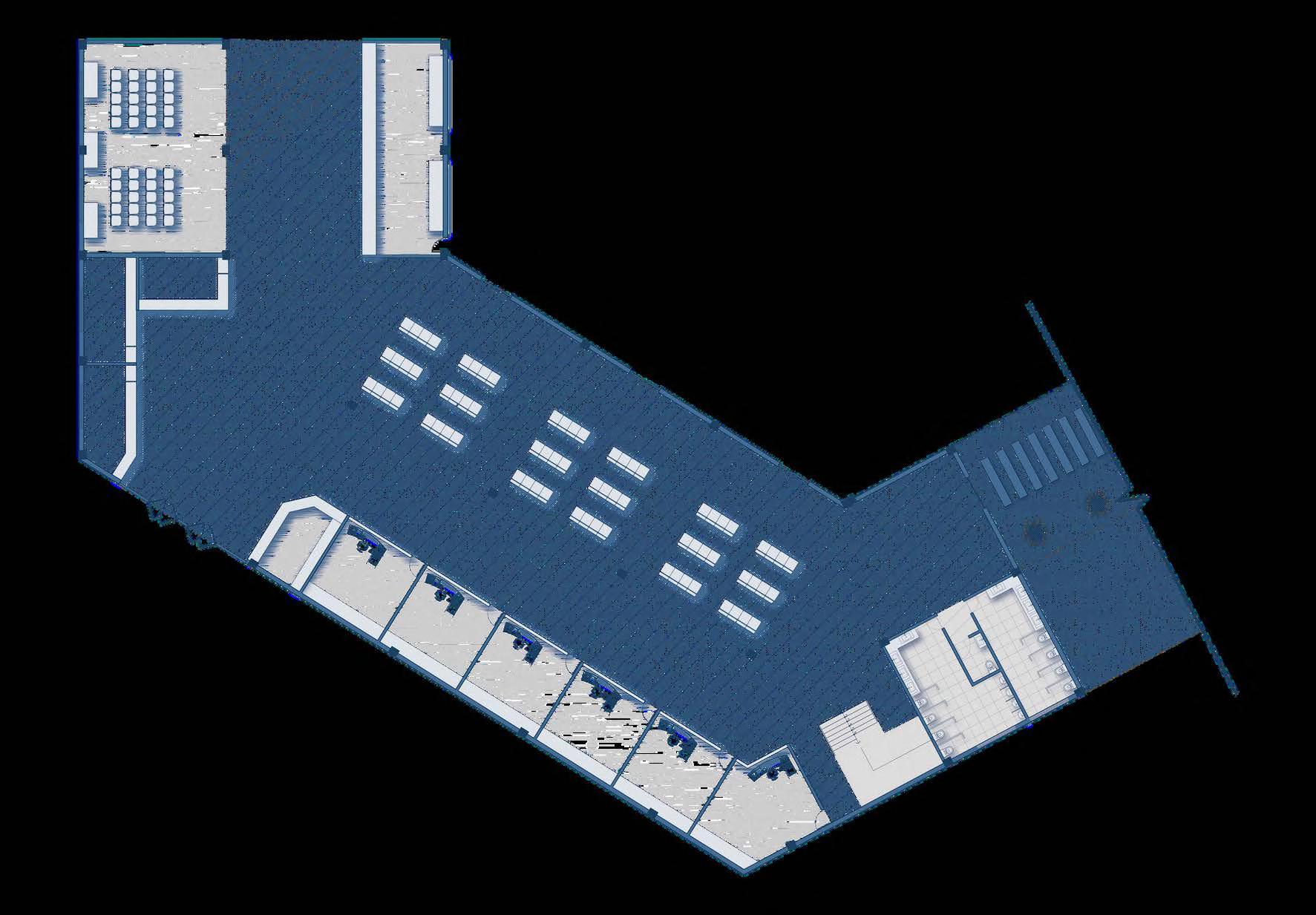Elauditorioposeebutacasfijasdispuestas para garantizar visibilidad y acústica óptimas, mientras que los salones de exposición combinan un gran espacio central con áreas menores periféricas paraactividadessimultáneas.Elmobiliario seorganizademanerafuncionalparano obstaculizar pasillos ni zonas de circulación. La presencia del hall y las áreas intermedias facilita la transición entre ambientes y refuerza el carácter multifuncional del conjunto, permitiendo adaptarseadistintasescalasdeevento.