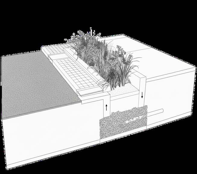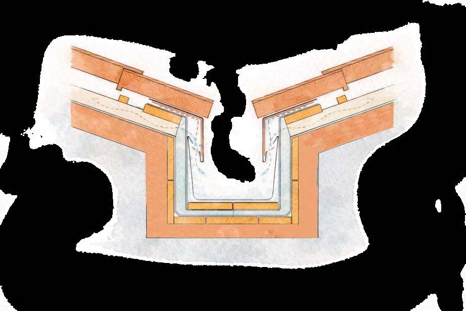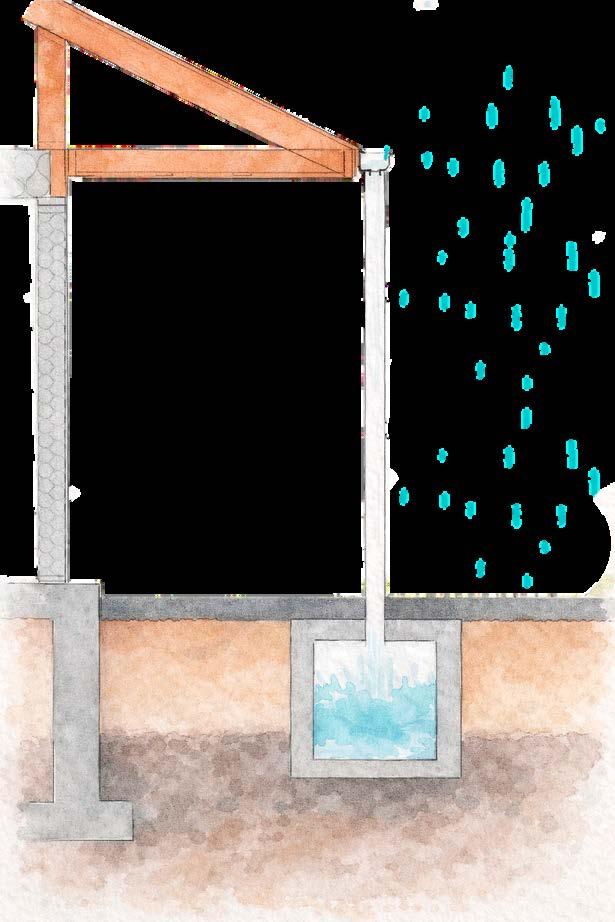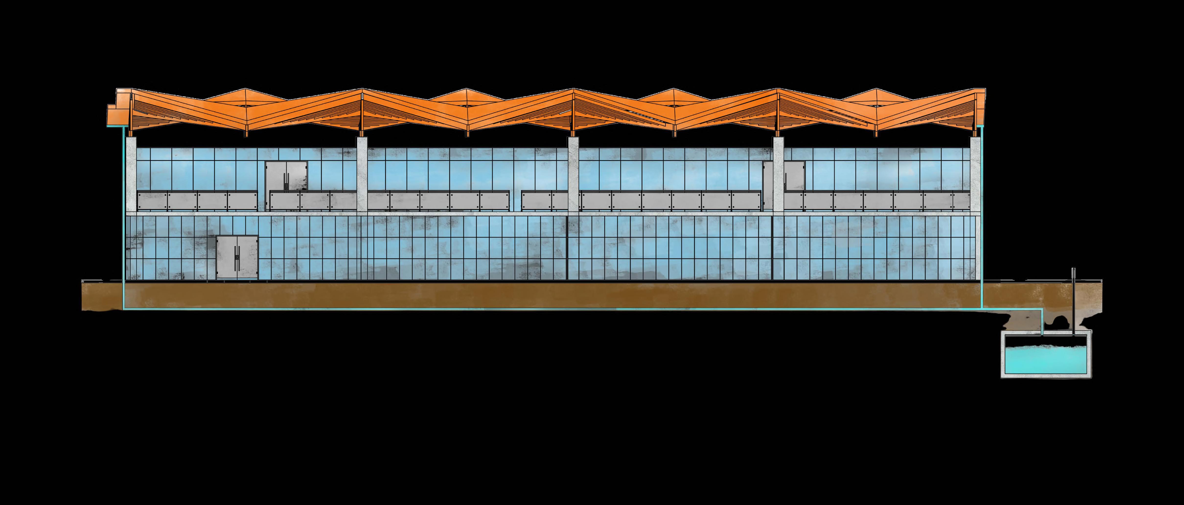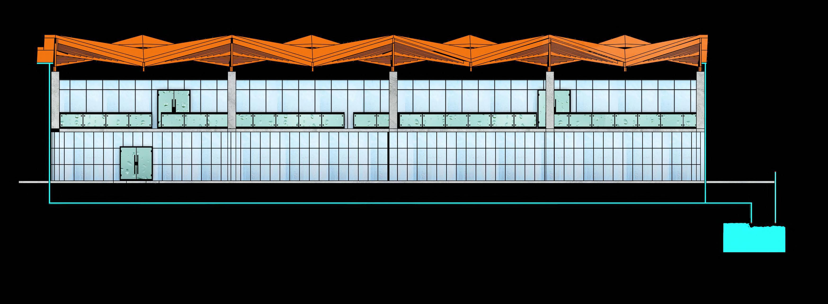 Elprocesoiniciaenlacubiertadeledificio, cuya geometría facilita la captación de agua pluvial. El agua de lluvia es recolectada mediante canaletas ubicadas estratégicamenteeneltechoyconducida atravésdeunareddetuberíasverticales integradasaldiseñodeledificio.