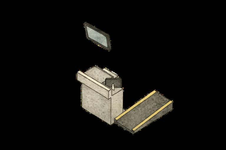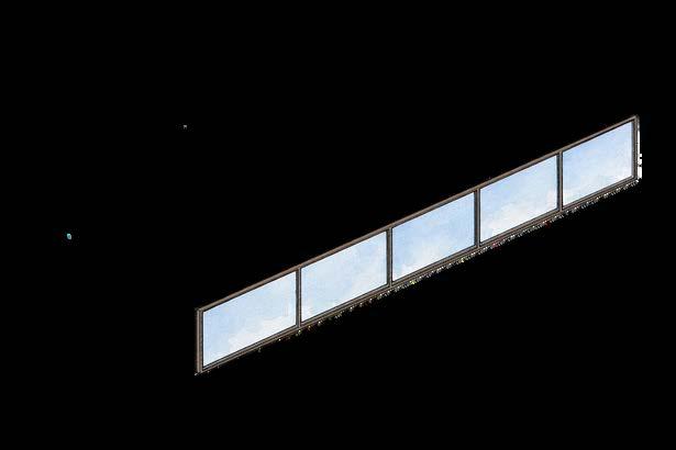 Laventanaseplanteacomounelemento de mobiliario fijo que permite el ingreso controlado de iluminación natural y favorecelarelaciónvisualconelexterior, contribuyendo al confort ambiental del espacio interior. Su diseño enfatiza la transparencia y la continuidad visual, integrándose de manera equilibrada al conjunto.