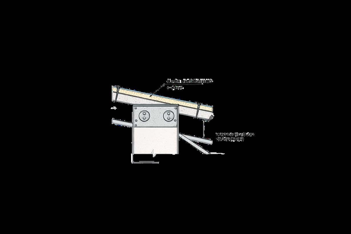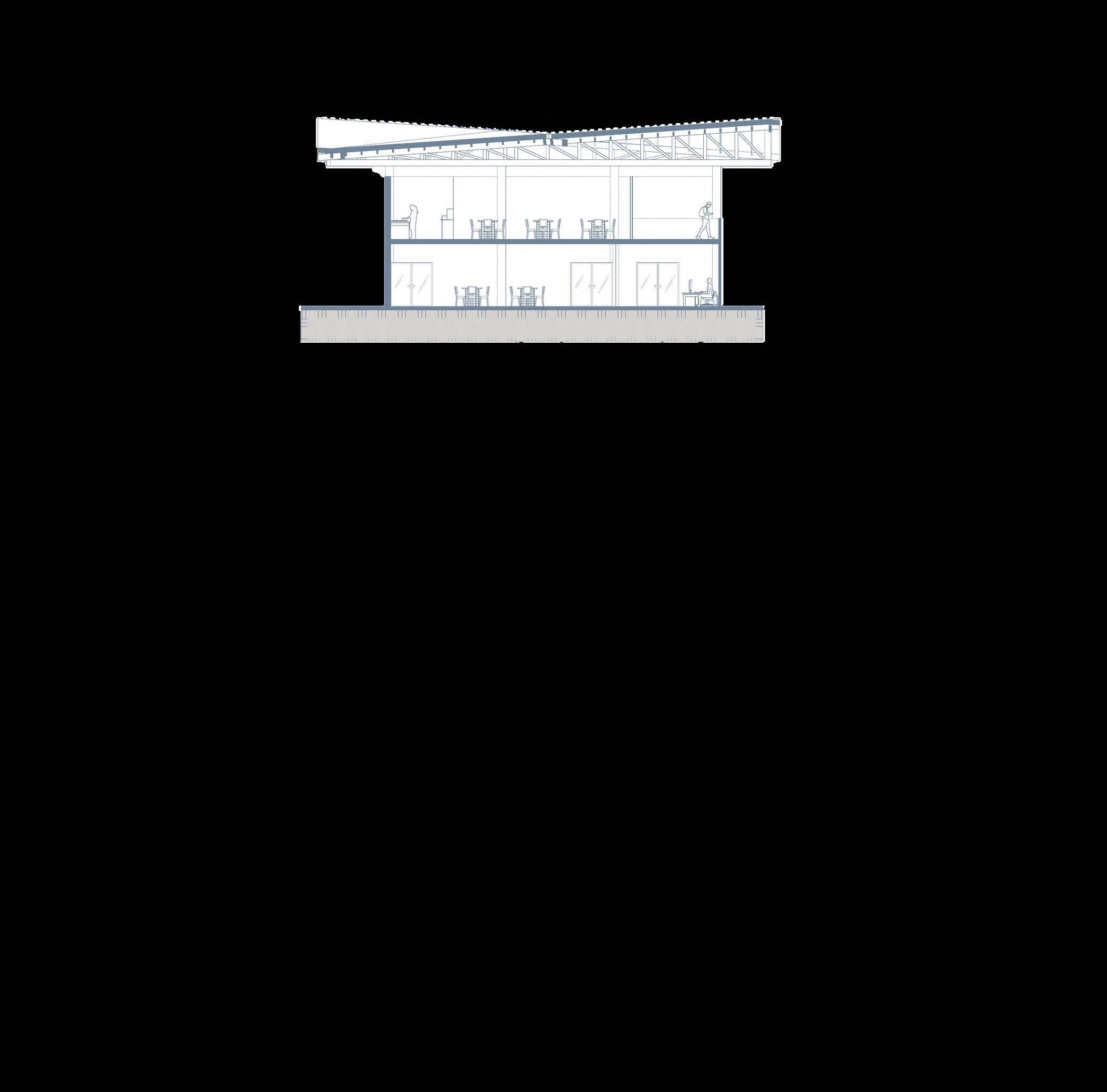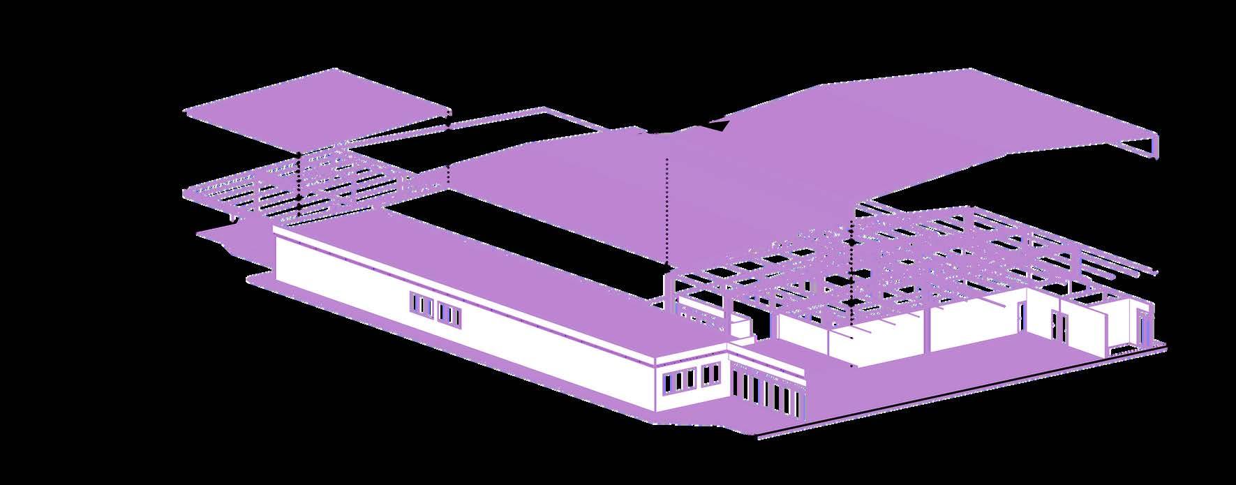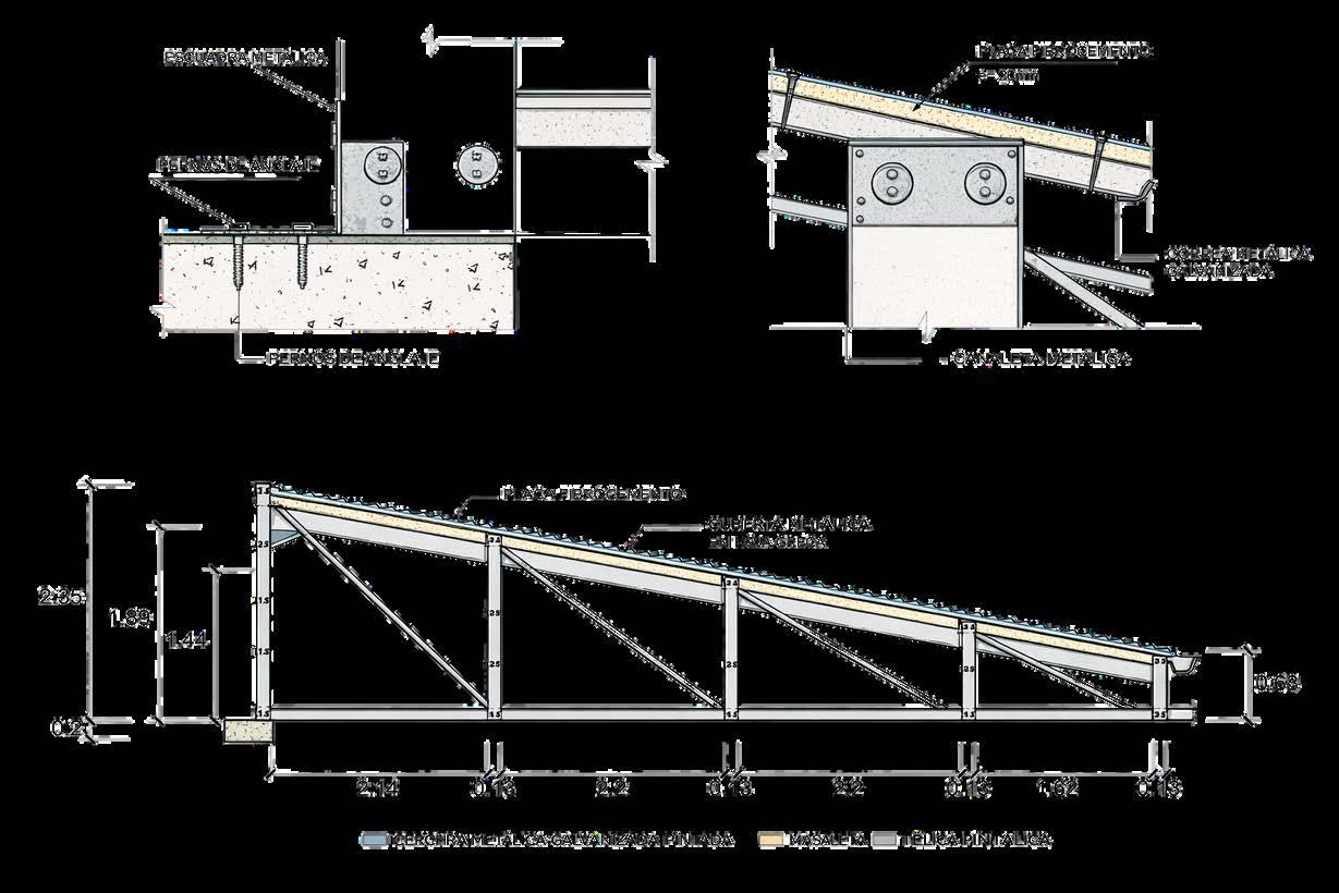 La geometría inclinada de la cubierta ha sido aprovechada para orientar adecuadamente los paneles solares, garantizando una correcta captación de radiaciónsolardurantegranpartedeldía yalolargodelaño.Estasoluciónpermite convertirlacubiertaenunelementoactivo desdeelpuntodevistaenergético.