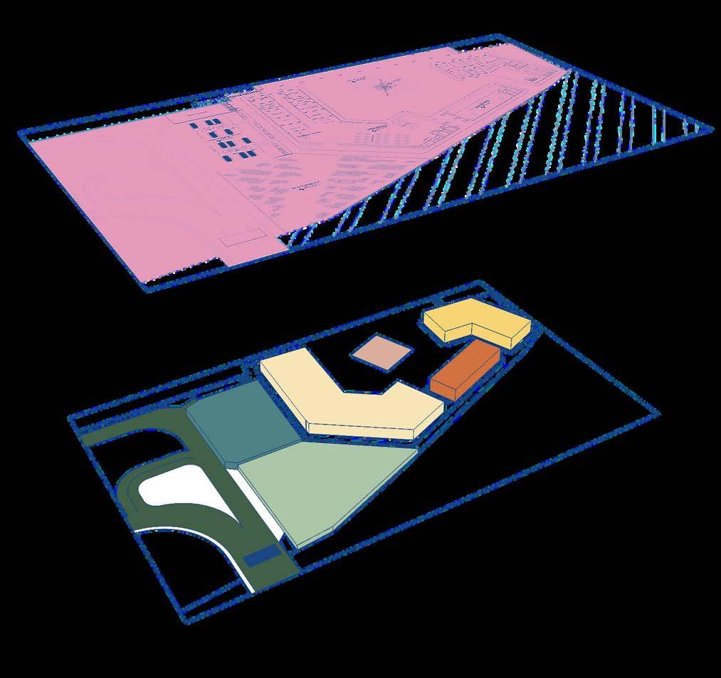 El parque combina tres tipos de intervenciones: conservación con cambio de uso (terminal, hangares, pistas como huellashistóricas),recuperaciónambiental y construcción de nuevos servicios en áreas periféricas. De este modo, la zonificaciónreflejaunsistemahíbrido