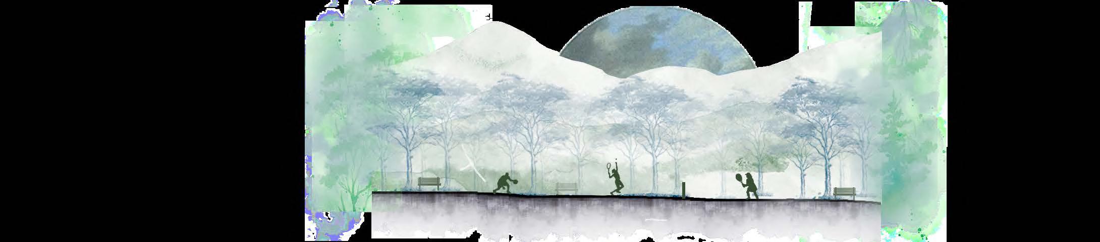 Se crearon modernas canchas de baloncestoytenisparausopúblico.Estas nuevasáreasdeportivas,queseadaptan perfectamentealatopografíadelterreno, permiten a los residentes disfrutar de actividadesfísicasyfomentanunpuntode encuentro activo para la comunidad. La creación de estas infraestructuras deportivas aprovecha la vasta extensión dellugarparaofrecerespaciosampliosy funcionales, contribuyendo así a la vitalidadurbana.