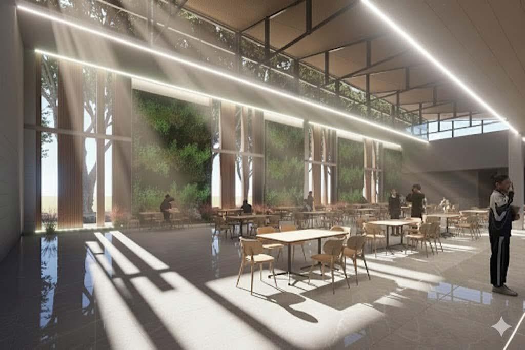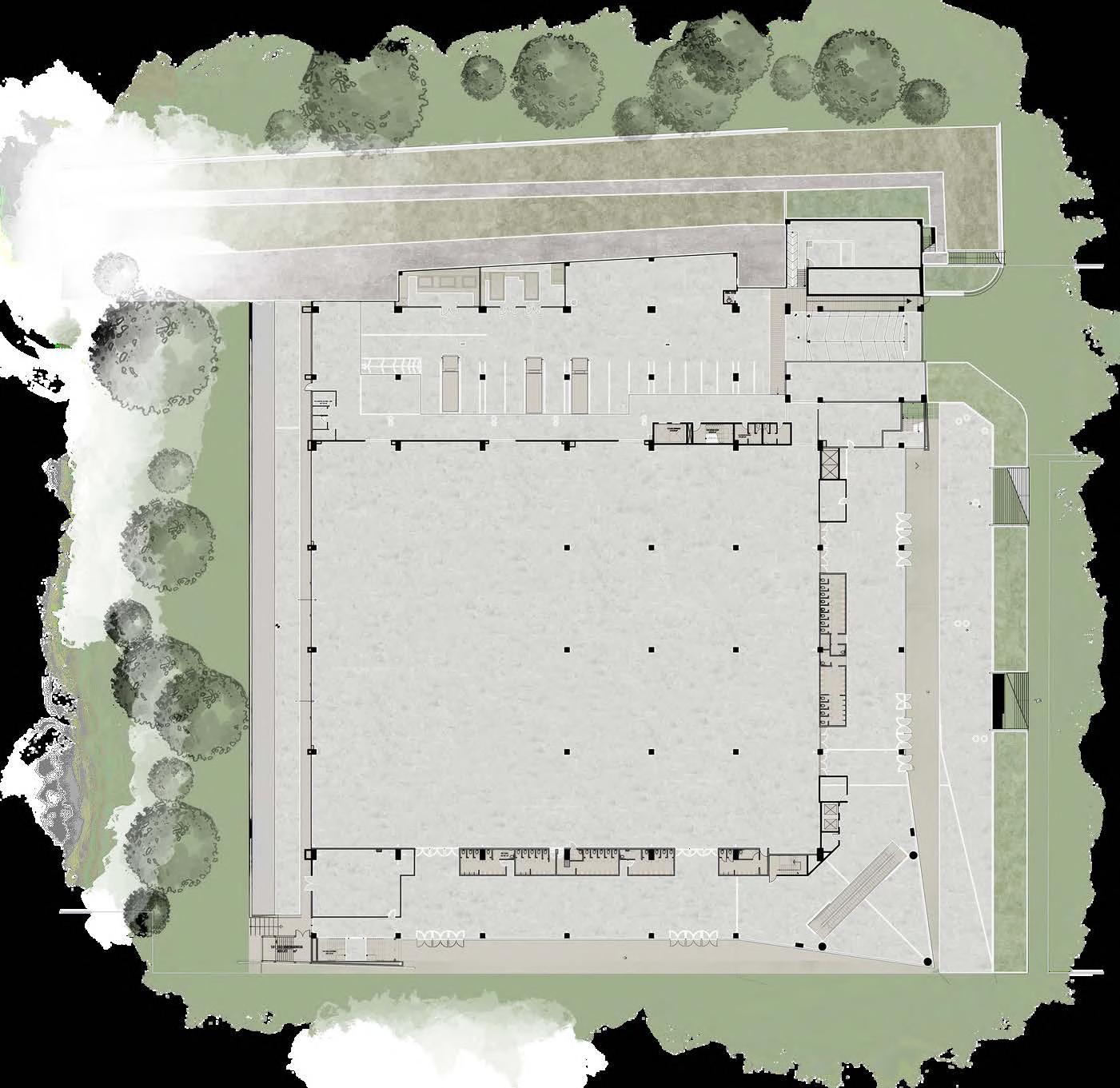 La zonificación del espacio en este proyecto permite maximizar su uso. La Sala de Exposiciones, un área principal, fue diseñada para albergar eventos masivos de gran escala. Adyacente a esta, el Espacio Central de doble altura actúacomoelnúcleoprincipaldeledificio, sirviendo como un punto de encuentro clave y una zona de transición que conectalasdistintasáreasdelrecinto.