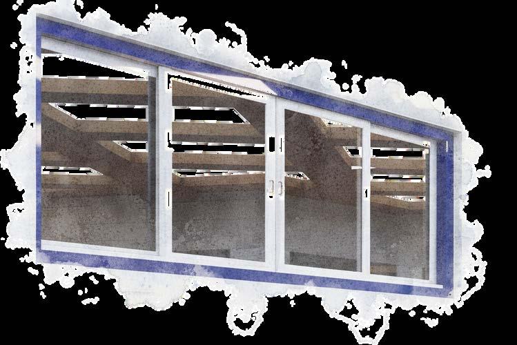 Este mobiliario contribuye al control ambiental y al desempeño funcional del recinto,optimizandolailuminaciónnatural y la protección del espacio interior. La ventanaseintegradeformacoherenteal lenguaje arquitectónico del proyecto, reforzando su carácter contemporáneo y técnico.