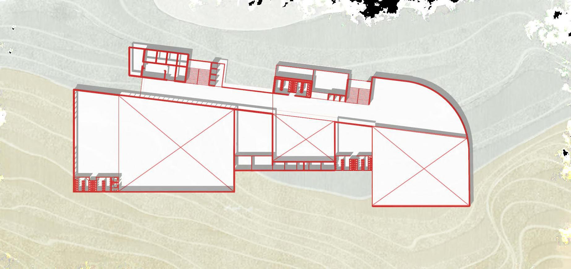 En la primera planta se concentran los ambientes de mayor aforo, como el auditorio principal con mobiliario fijo, salonesdeexposiciónampliosyunhallde recepciónquefuncionacomoespaciode distribución. En la segunda planta se desarrollan áreas de apoyo y espacios complementarios, incluyendo una zona amplia con vistas directas al parque que funciona como área de descanso y contemplaciónparalosvisitantes.