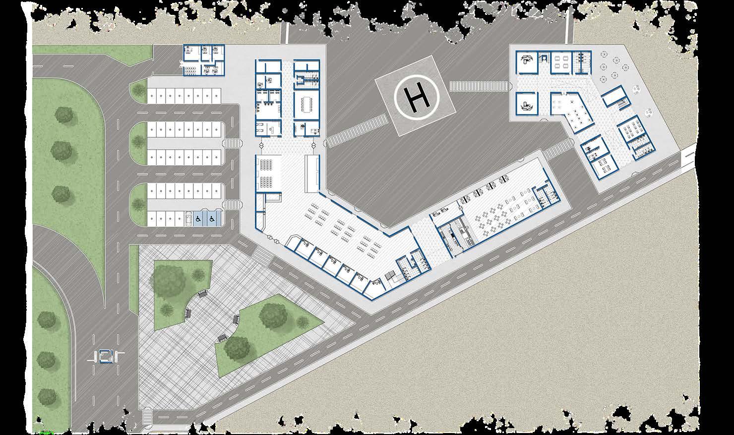 Finalmente, la distribución perimetral de estoselementospermiteunalogísticade evacuación rápida y discreta hacia el exterior, evitando el cruce de flujos de residuosconlascirculacionesprincipales delosusuarios.Deestemodo,lagestión de desechos deja de ser un servicio secundario para convertirse en un componente activo del diseño bioclimático,contribuyendoalaresiliencia delproyectoyasegurandounciclodevida sostenibleparatodalainfraestructura.