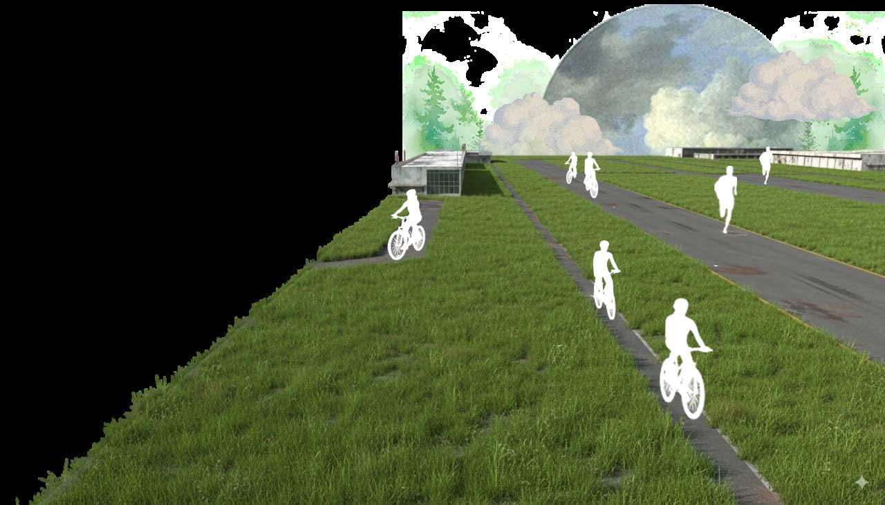 aviación se ha convertido en las vías principales para una gran variedad de actividades deportivas y de ocio. La imponenteescalayeldiseñolinealdelas antiguas pistas de aterrizaje y calles de rodaje se han reutilizado de forma inteligente para acoger a corredores, ciclistas y patinadores. Estas áreas también funcionan como canchas informales, adaptándose de forma espontánea a las necesidades de la comunidadparadiversosjuegosurbanos, comoelfútbolyelbaloncesto.