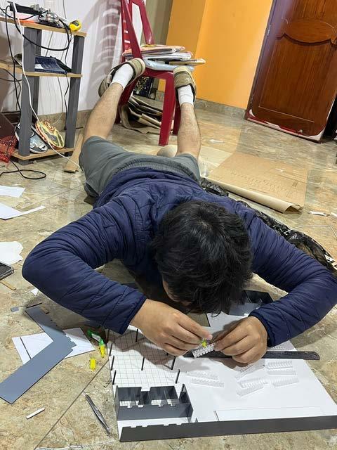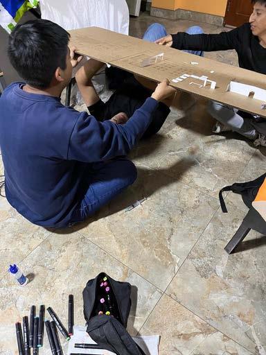 El camino no estuvo exento de conflictos, confusiones e incertidumbre, especialmente durantelaelaboracióndelasmaquetas,donde surgieron errores, correcciones de último momentoydecisionescomplejasquepusieron a prueba nuestra capacidad de organización, comunicación y adaptación. Las amanecidas enlacasadeuncompañeroseconvirtieronen parte esencial del proceso: noches largas entre cartón, pegamento, planos, maquetas y café, marcadas por la presión del tiempo y la constante duda de no saber si lograríamos cumplirconlosplazosestablecidos.