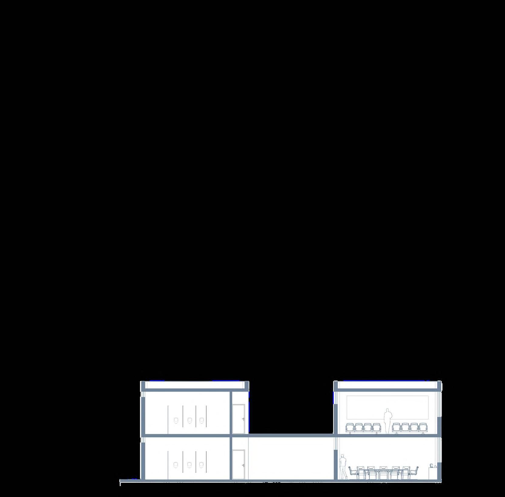 Eledificiosedesarrollaendosniveles:un primerpisode7mdealturayunsegundo de 5 m. Estas dimensiones permiten albergareventosnumerososyactividades propiasdeuncentrodeconvenciones.En la zona central destaca un espacio de doble altura que articula los ambientes y refuerza la sensación de amplitud. La escala combina monumentalidad con proporción humana, generando interiores representativosyversátiles.