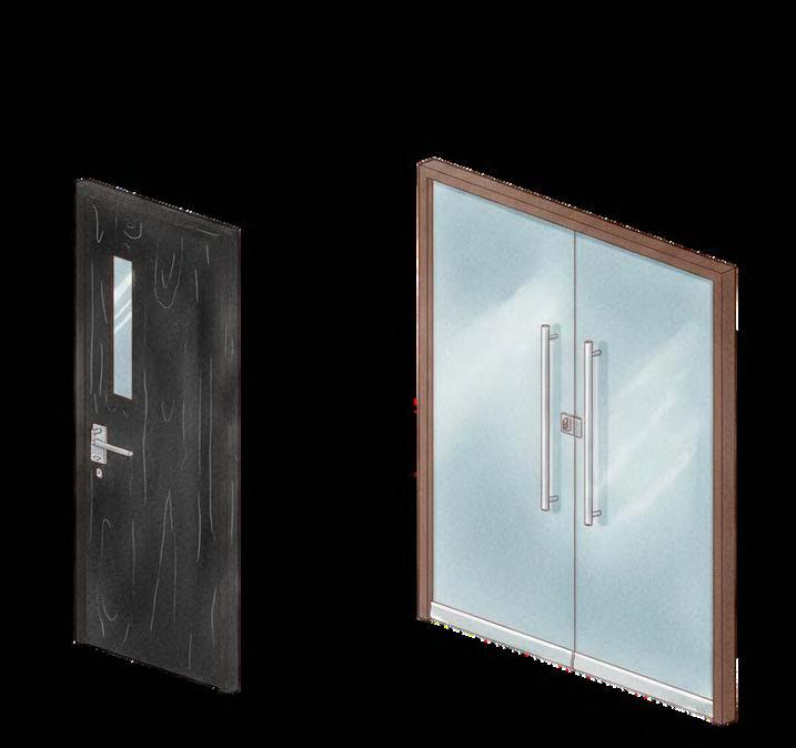 La puerta se concibe como un elemento de mobiliario arquitectónico que organiza la circulación interior y permite el control de accesos entre los distintos ambientes del edificio. Su diseño prioriza la funcionalidad, la resistencia y la correcta integración con el espacio, aportando ordenycontinuidadalrecorridointerior.