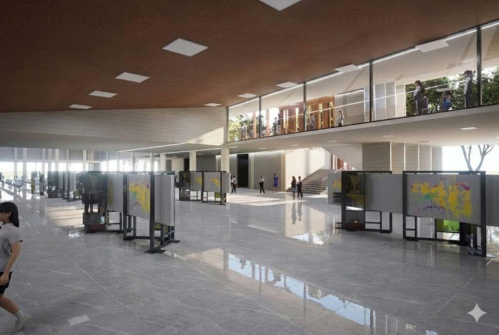 Elauditoriocuentaconasientosfijosyuna disposición que optimiza visibilidad y acústica. Los salones de exposición se organizan en un gran espacio principal con ambientes periféricos menores para actividadescomplementarias.Elmobiliario ordenado refuerza la circulación libre y la adaptabilidad del conjunto, manteniendo uncarácterabiertoydinámico.