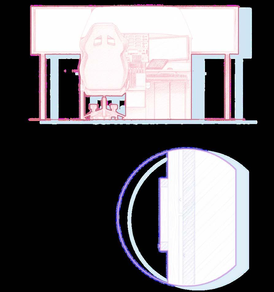 Elsimuladordevueloseconcibecomoun mobiliarioespecializadoquereproducelas condiciones operativas de una cabina aérea, priorizando la funcionalidad y el realismo. Su diseño permite una experiencia inmersiva, adecuada para actividades de formación y simulación dentrodeledificio.
