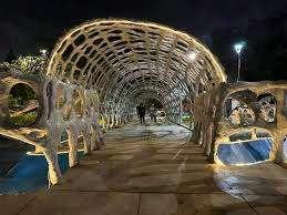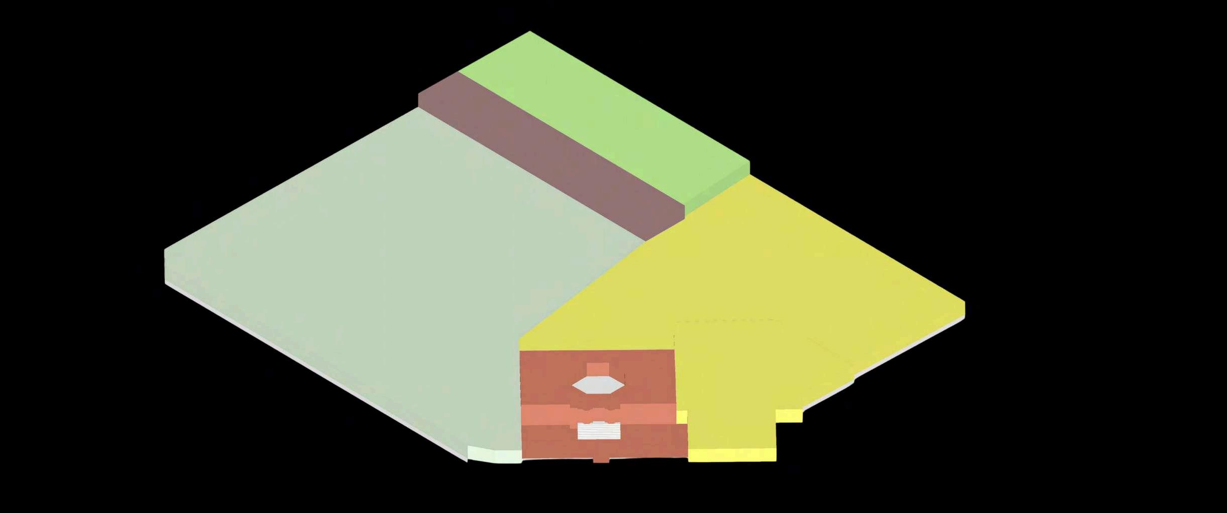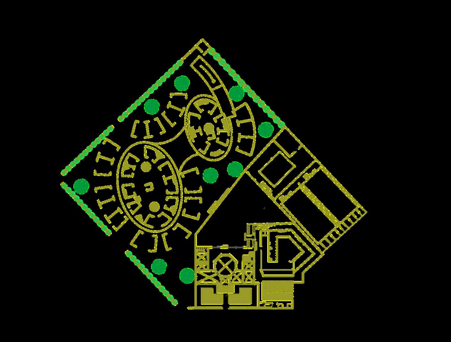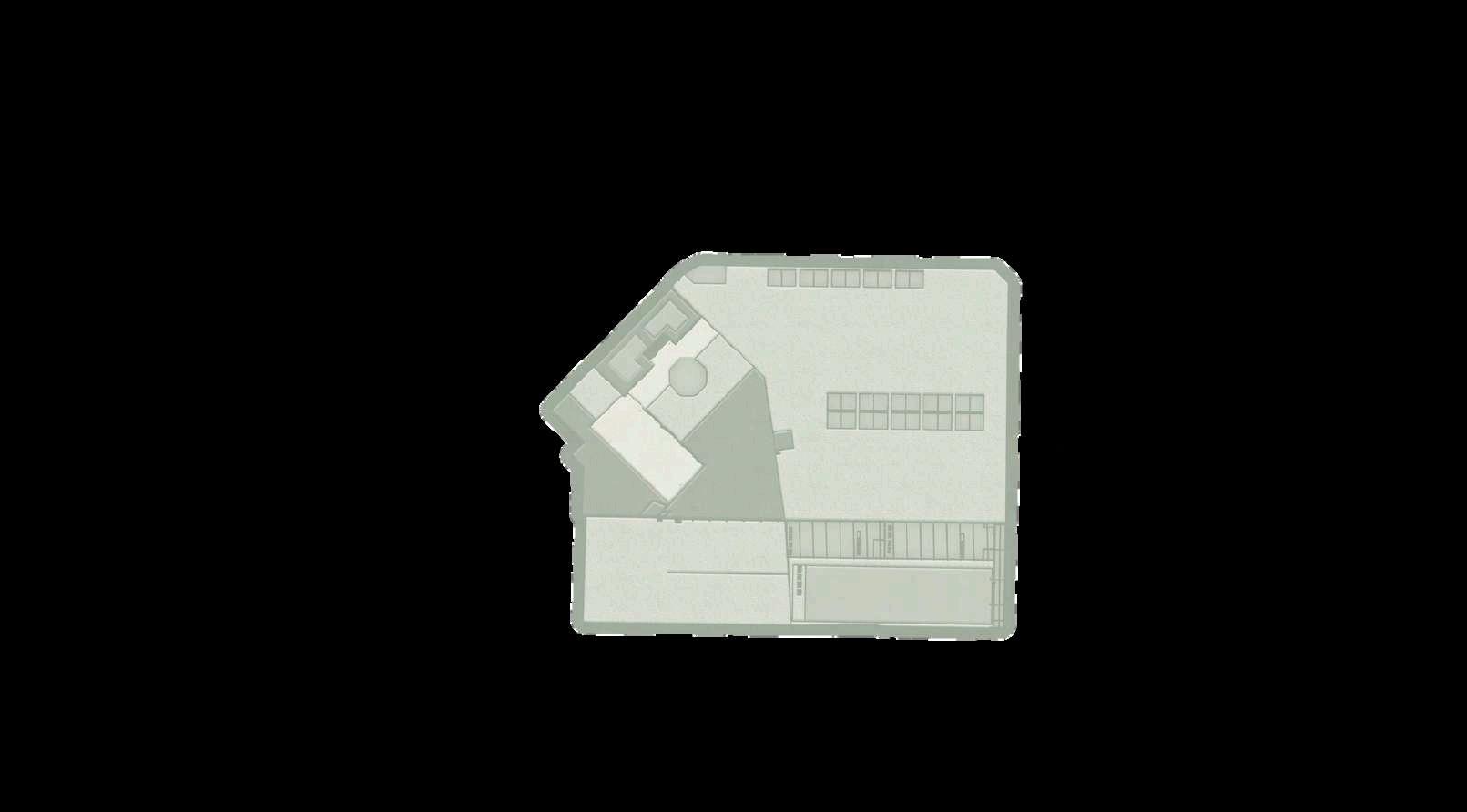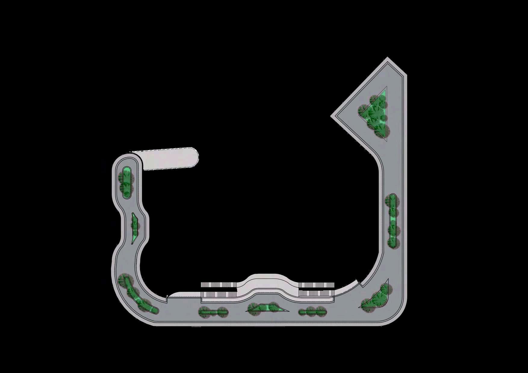 El interior del parque se destina principalmente a zonas de recreación y estancia, priorizando superficies libres, áreasajardinadasyrecorridospeatonales continuos que permiten una experiencia fluida y accesible. La disposición abierta delespaciocentralfavorecelaflexibilidad de usos, desde actividades recreativas hastaencuentroscomunitarios.Integrada de manera estratégica en la planta, se ubica el inicio de la rampa hacia el edificio de estacionamiento, concebida como un elemento de transición que articula el parque con la infraestructura vehicular,minimizandosuimpactovisual ymanteniendolacontinuidaddelespacio.