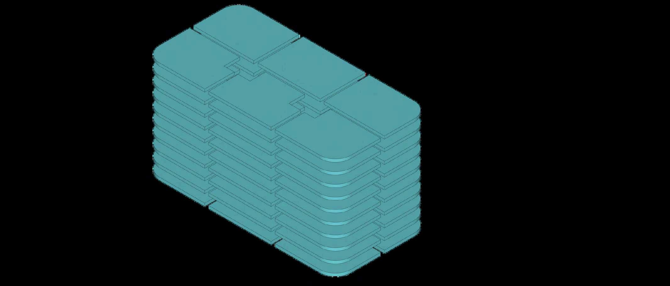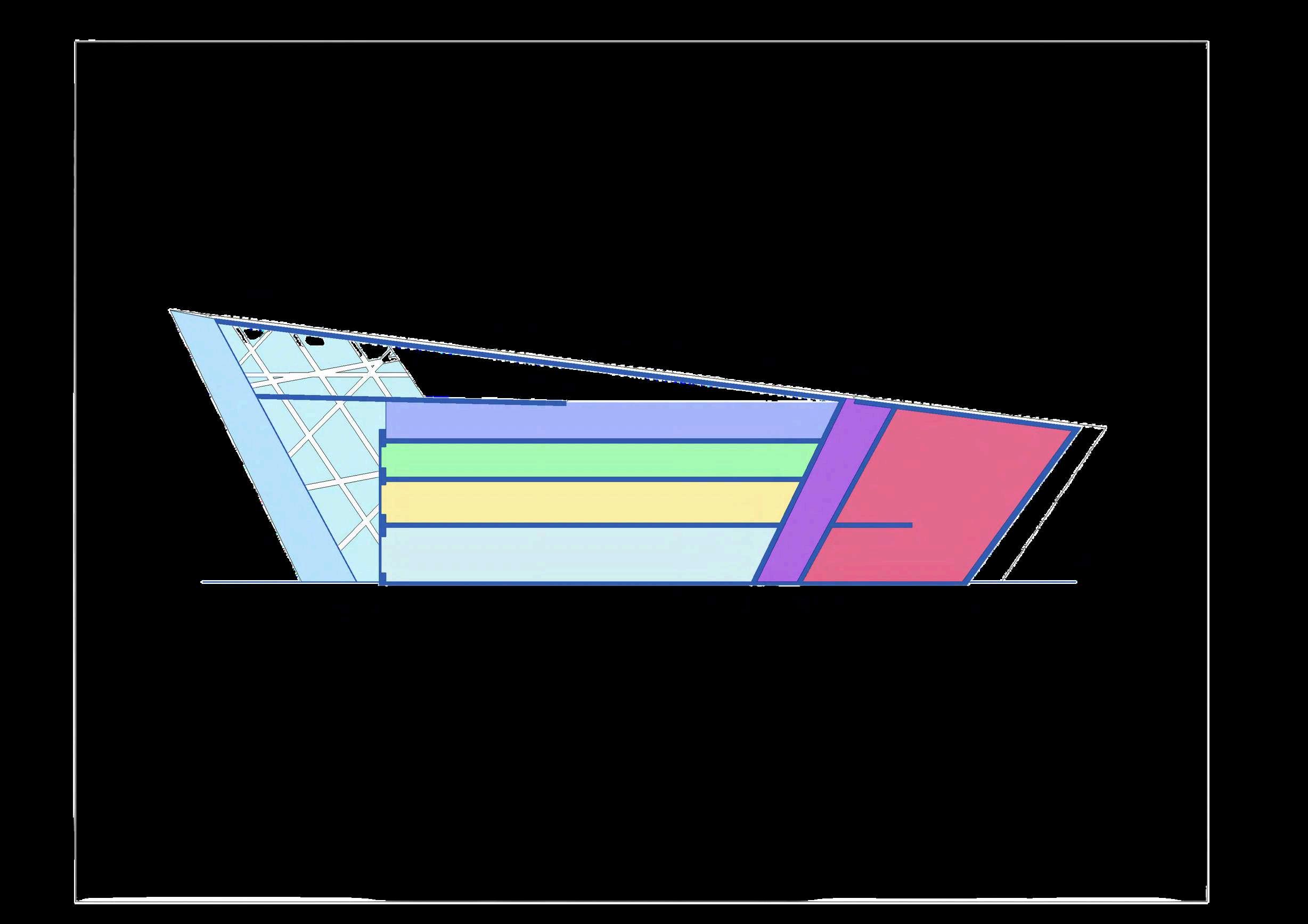 Desde una perspectiva espacial, las secciones representan las variaciones entrelostrestiposdeplantaintercaladas. Estas diferencias se manifiestan mediante vacíos y secciones de planta parcialmente cortadas, que generan aperturasverticalesalolargodeledificio.