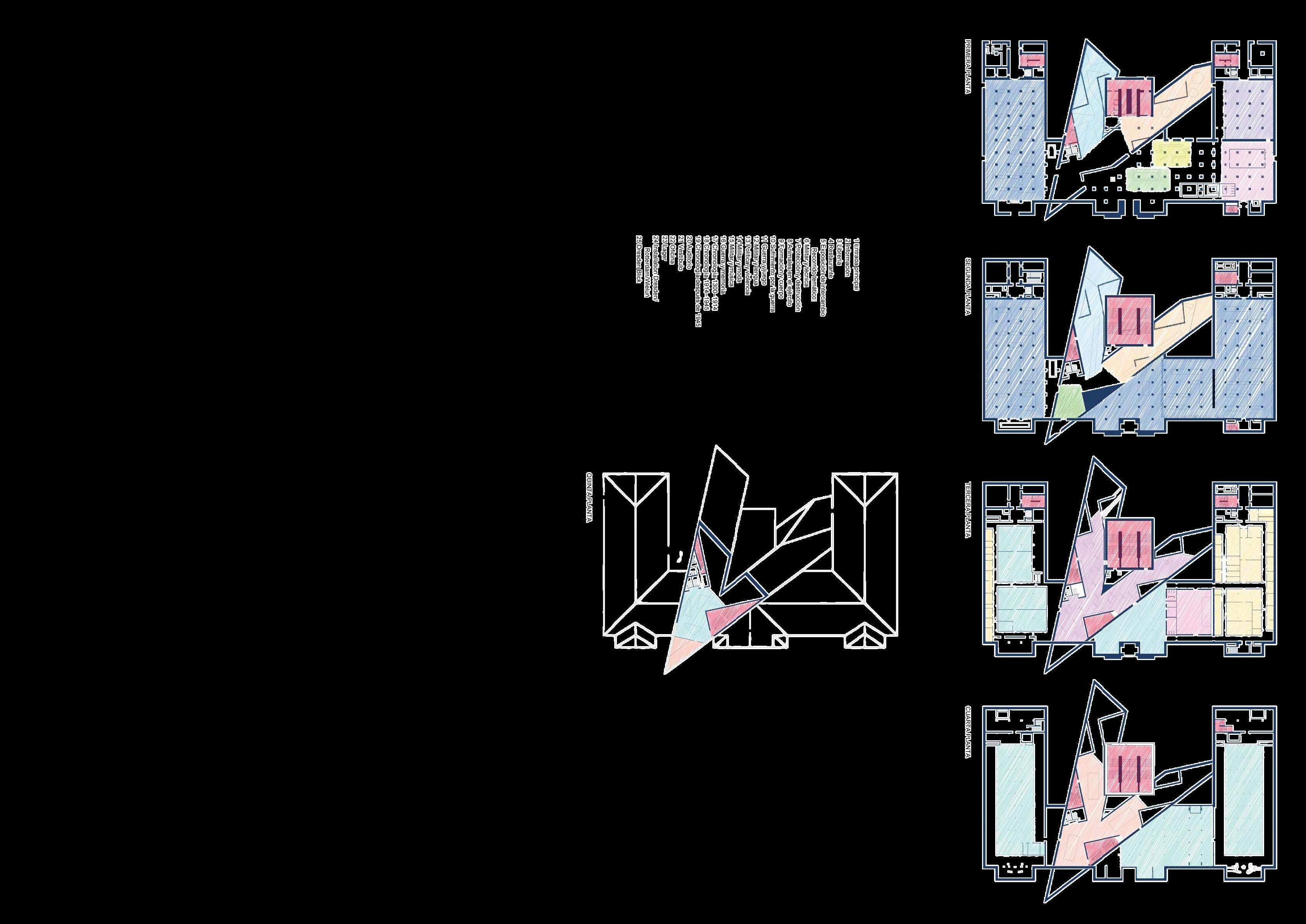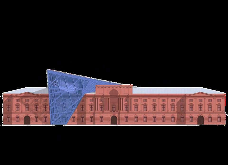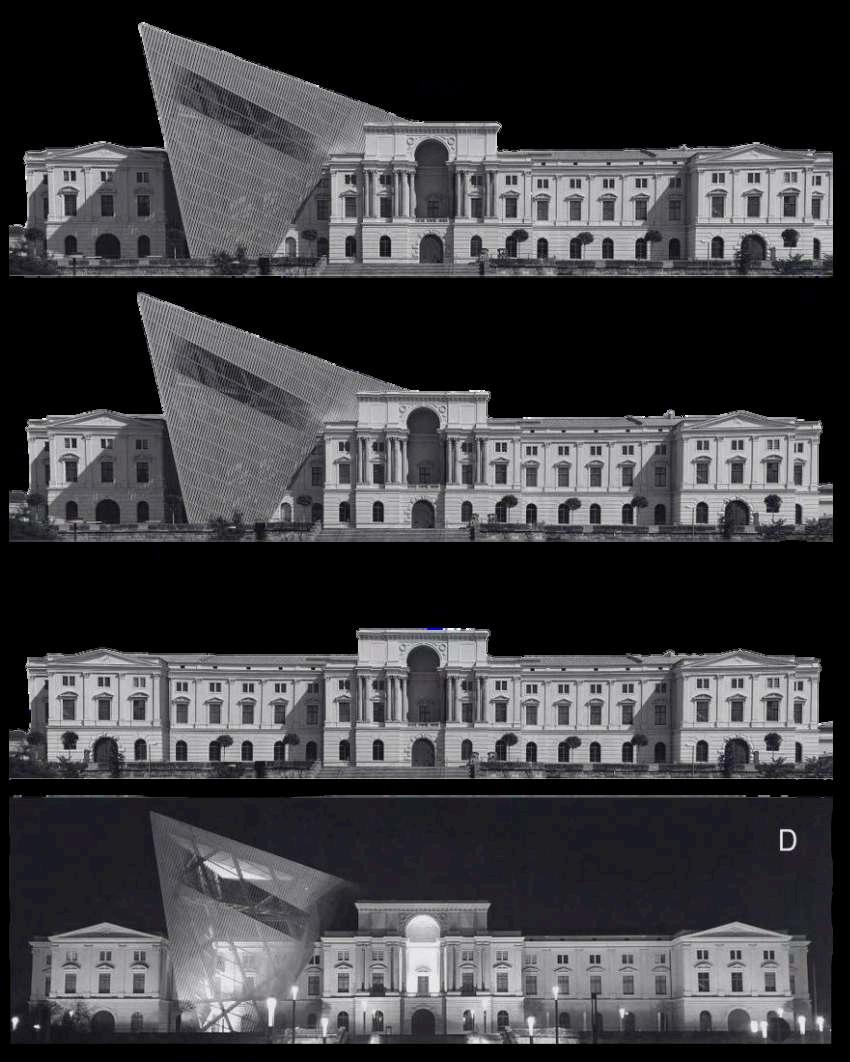 El desafío fue incorporar un lenguaje arquitectónico contemporáneo sin alterar laesenciadelarsenal.Libeskindresolvió esta tensión mediante una estrategia de contraste: mientras el edificio original conserva su simetría y solidez, la nueva intervención introduce dinamismo, fragmentaciónycrítica,transformandoel museo en un espacio que interpela activamentelamemoriaylahistoria.