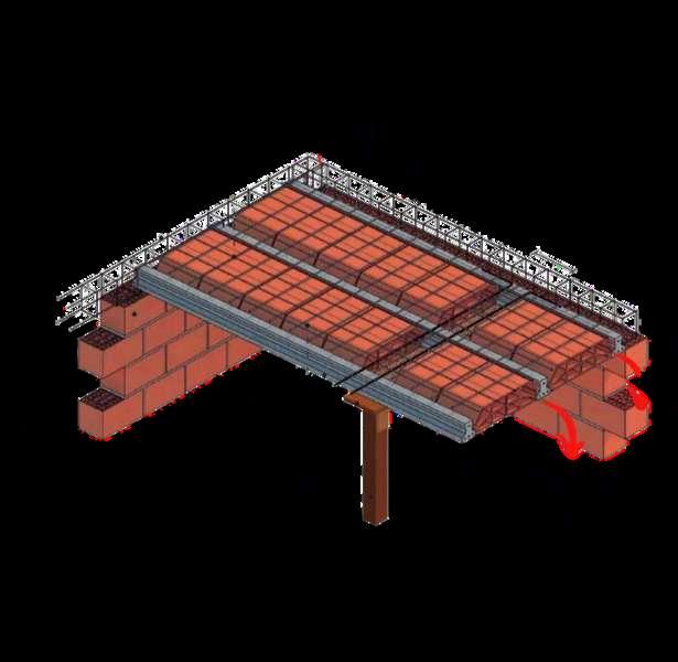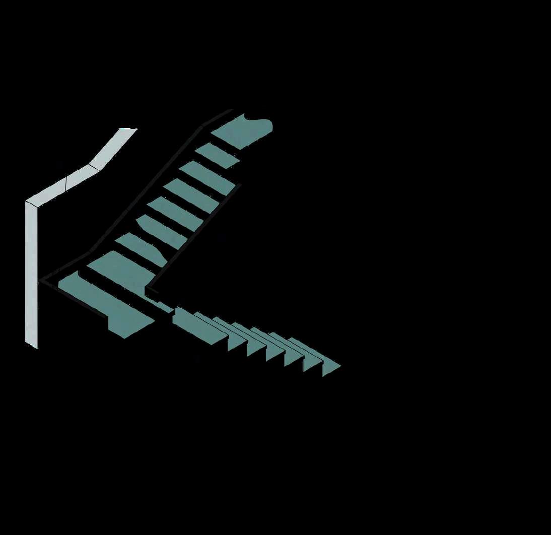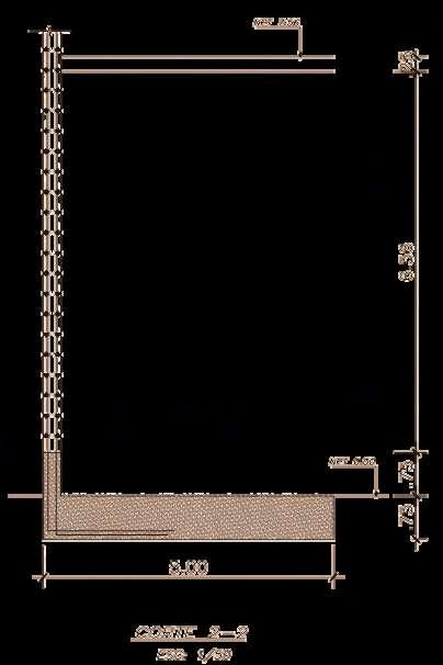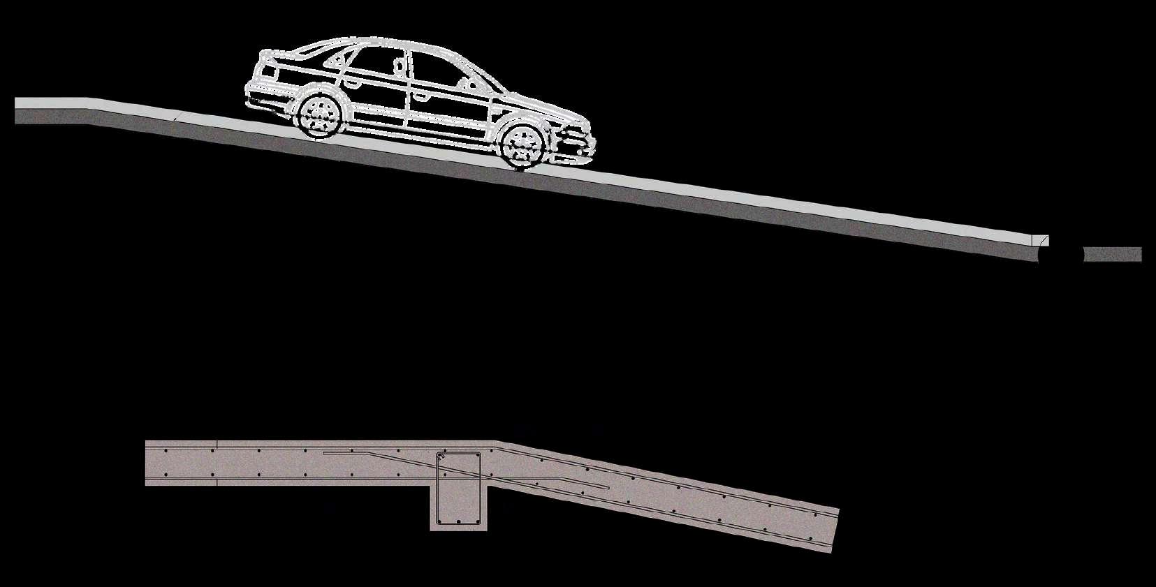 La rampa vehicular cuenta con una estructura independiente pero integrada al sistema general del edificio. Esta se apoya sobre muros de cimentación de concreto armado, diseñados para contener y transmitir las cargas generadas por el tránsito constante de vehículos.Lalosadelarampatrabajade manera continua entre niveles, asegurando una transición estructural claraysegura.Esteconjuntoestructural permite mantener la estabilidad del recorrido vehicular, integrándose de forma coherente con el resto de los elementosportantesdeledificio.